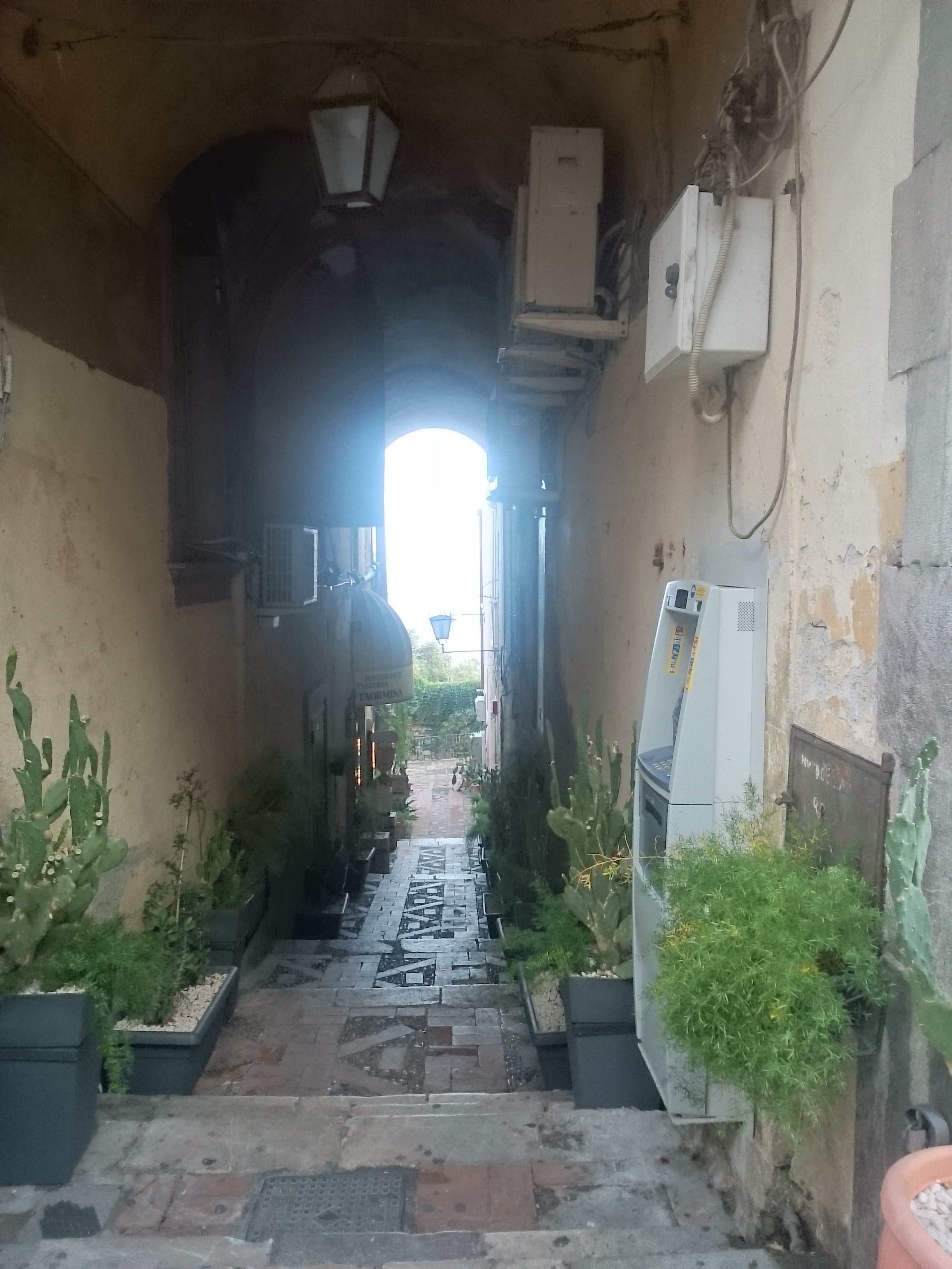 Cortile Pepe (Cefalù) : un petit panneau au coin d’une rue m’a intriguée, j’ai regardé, ça m’a plu, et… j’ai eu raison. Il s’agit là d’un restaurant chic (et pas bon marché, d’ailleurs), on y mange une cuisine sicilienne rénovée de manière très réussie.