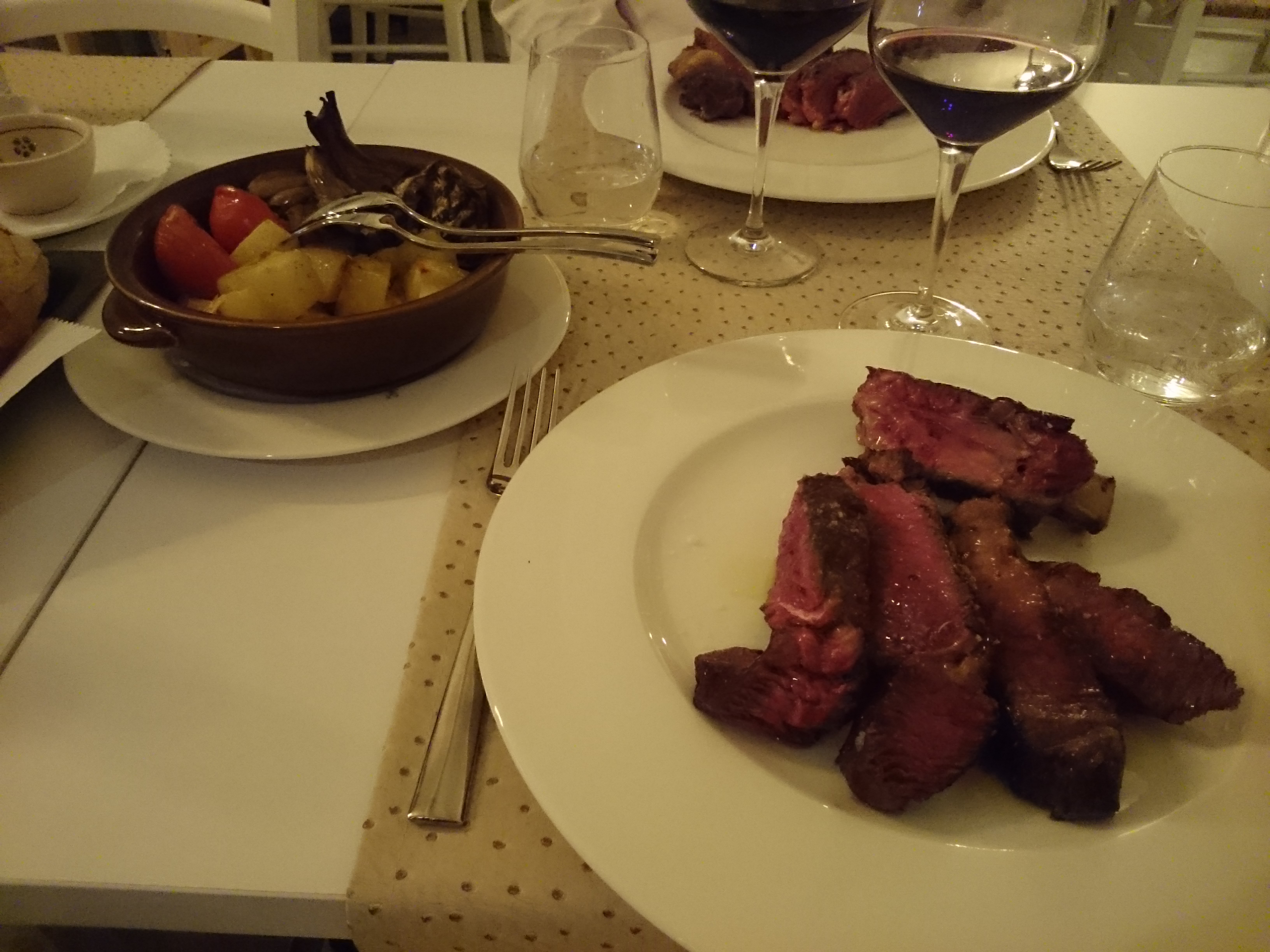 Une viande parfaite, saignante comme demandé, avec juste ce qu’il faut de graisse pour le goût. Légumes excellents, mais pommes de terre un peu sèches à mon goût, j’aurais apprécié plus de légumes et moins de pommes de terre – c’est personnel.