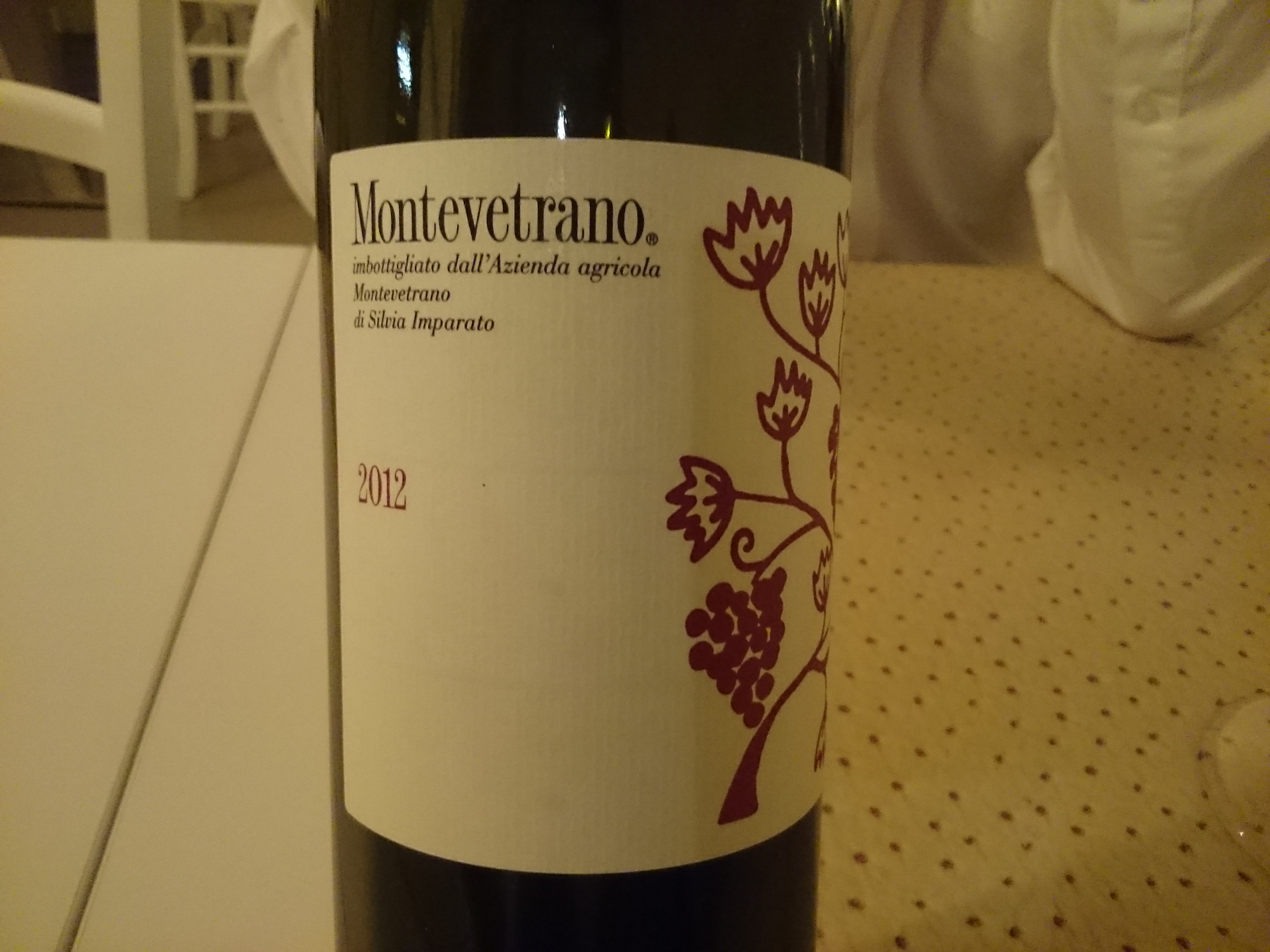Avec ce repas, nous avons cassé la tirelire et choisi un vin cher, un Montevetrano 2012 de la région de Salerno, délectable.