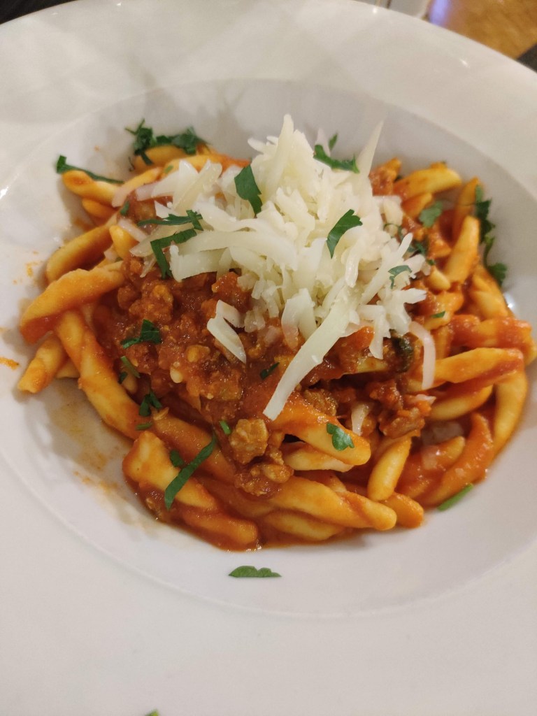 Mercredi soir, nous avons mangé au Ristorante Saint-Paul, un de nos restaurants favoris. L’accueil est toujours adorable, l’endroit est chaleureux (même si un peu bruyant, seule minuscule ombre au tableau), et la cuisine délicieuse. En entrée, mon homme et moi nous sommes partagés un trio de poissons : tartare de thon aux agrumes, carpaccio de loup de mer, crevette géante panée frite. Un pur délice ! Puis j’ai pris un classique de la maison, des pâtes fileja à la N’duja succulentes.