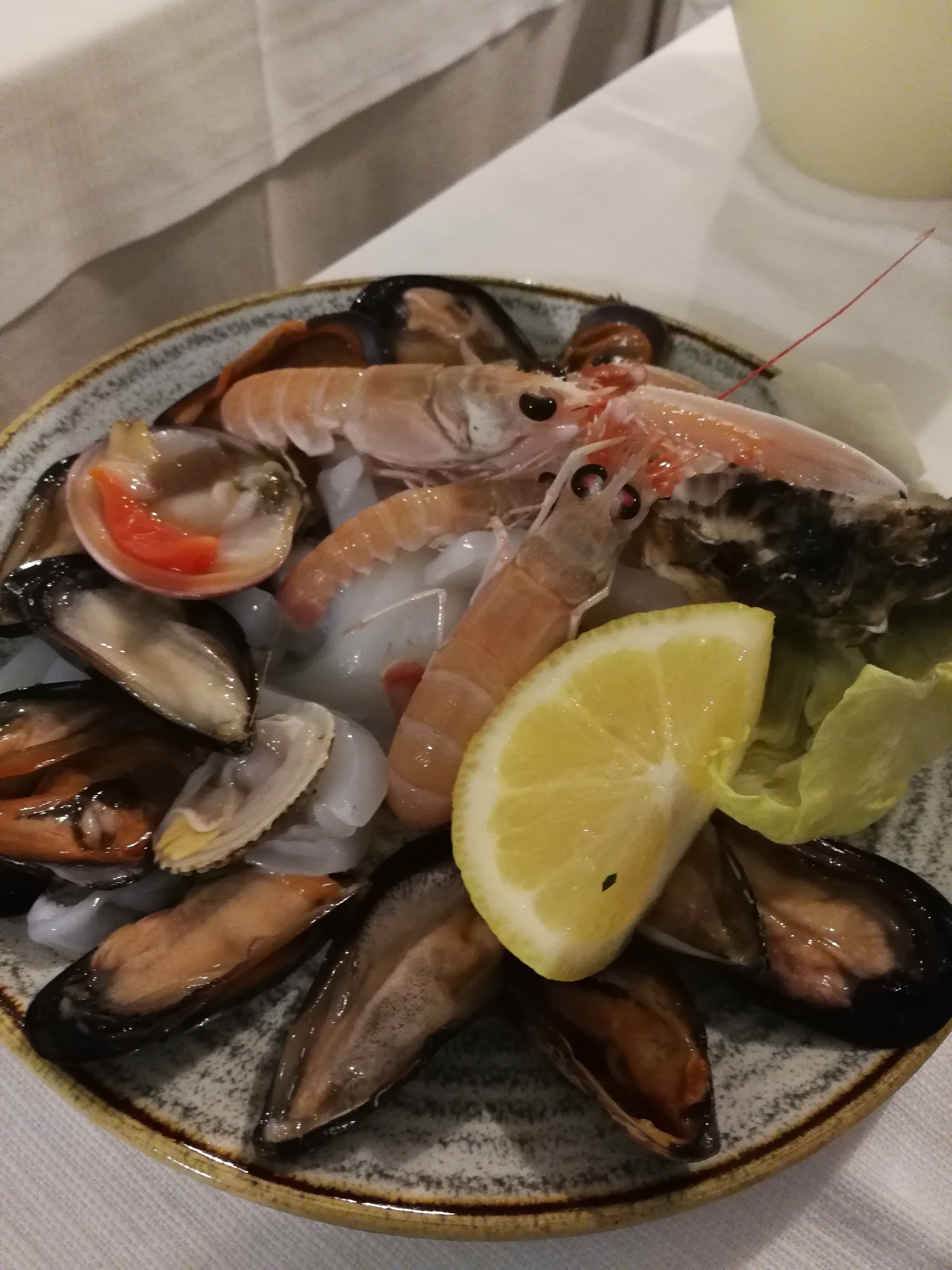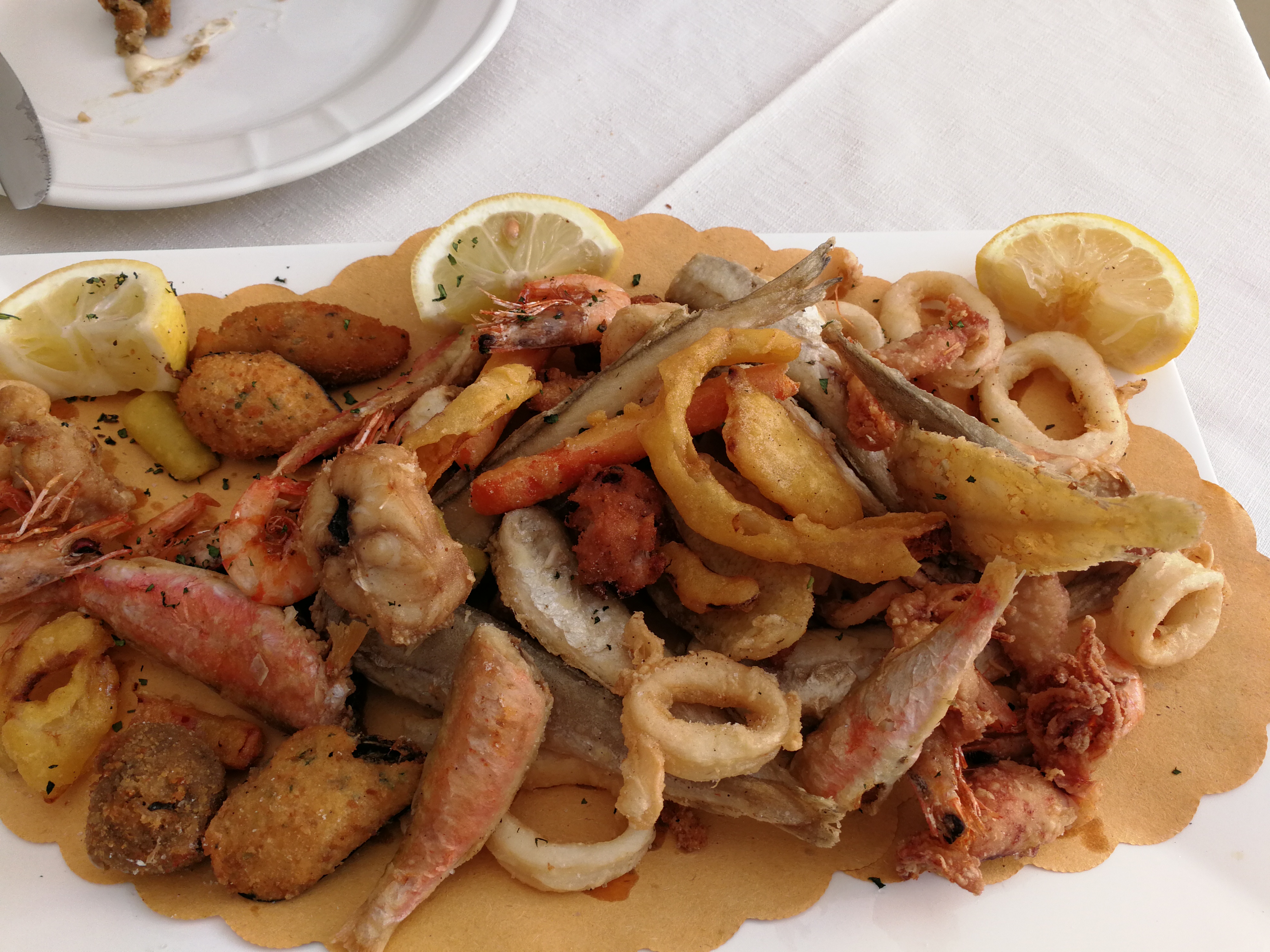 Un petit restaurant bien caché dans la vieille ville de Gallipolli (là où a priori on trouve les bistrots les plus touristiques et donc les moins intéressants), une vraie perle. Pour un prix presque dérisoire, j’ai eu un assortiment de poisson cru à damner un saint, puis nous nous sommes partagés un grand fritto misto de poisson et une belle salade bien fraîche, pour ensuite finir avec un spumone. Dix sur dix !