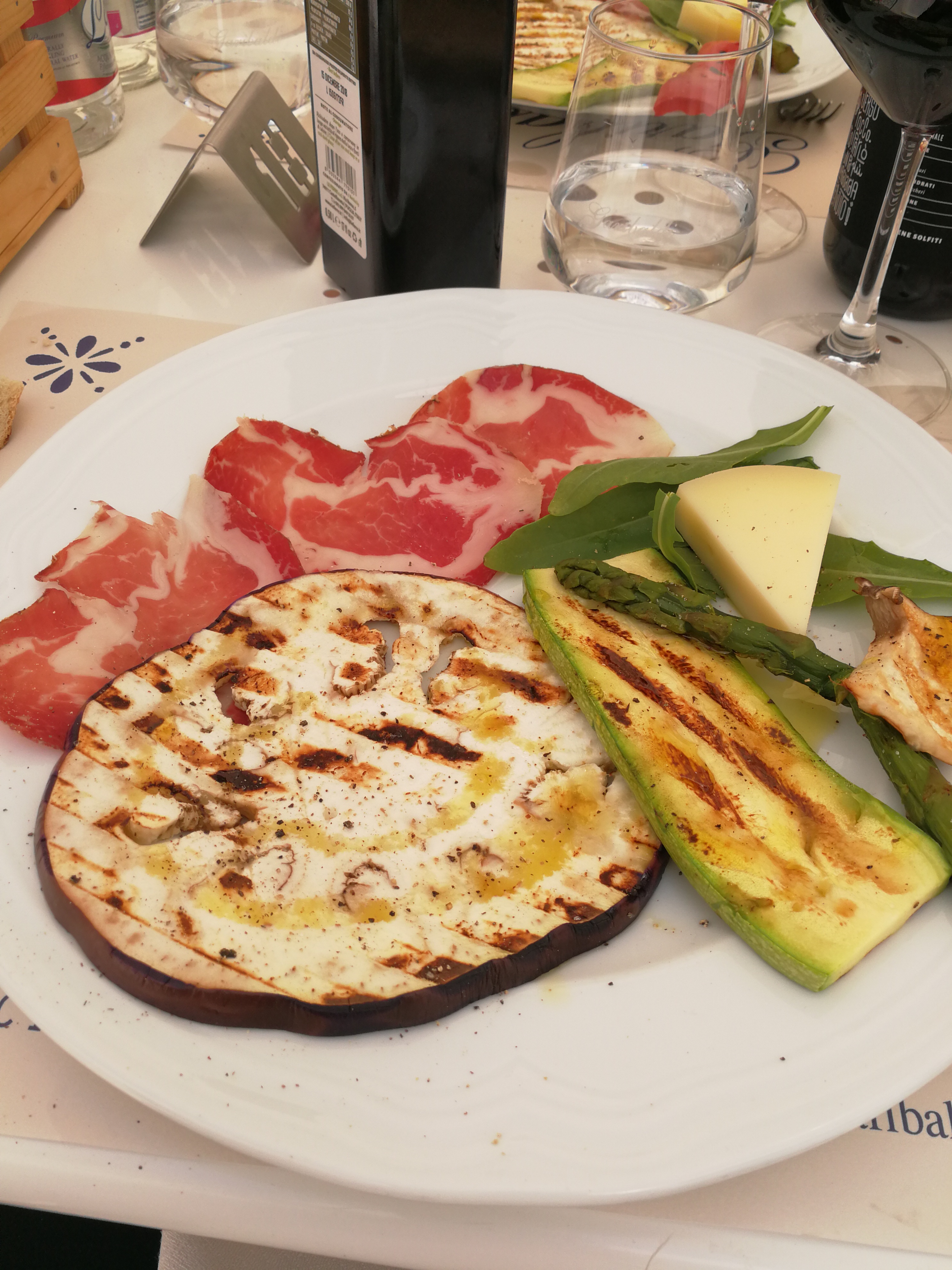 Aussi connu sous le nom de Garibaldi Bistrot. Sur la belle grande place de Martina Franca, sous un grand parasol, nous avons profité d’une excellente cuisine de trattoria. En entrée, nous avons partagé une assiette de charcuterie et une assiette de légumes grillés, puis j’ai pris un plat de pâtes aux asperges et à la burrata.