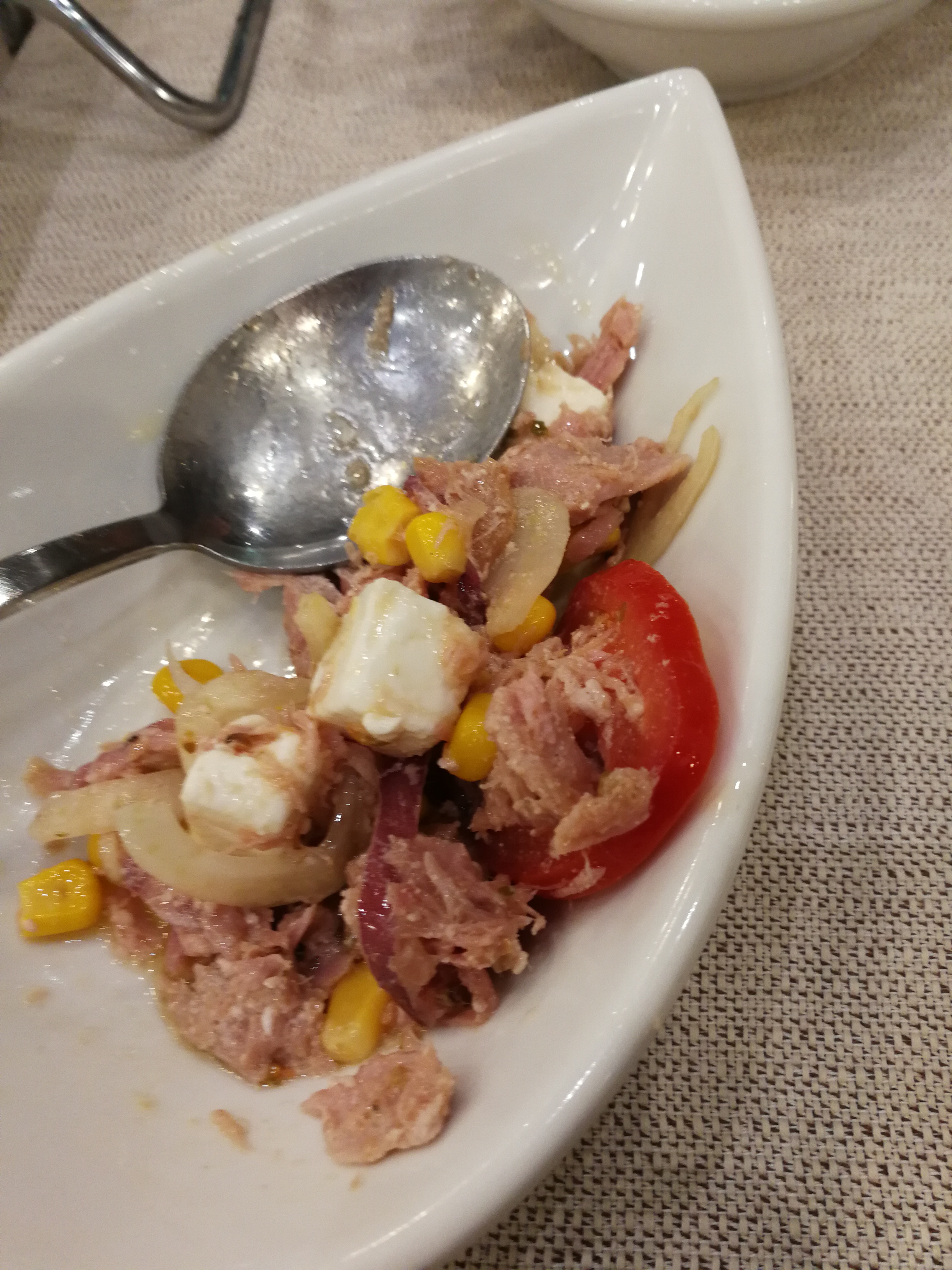 Un mardi midi dans cette petite ville charmante, pas grand chose d’ouvert (le mardi semble être un jour de fermeture classique dans les Pouilles). Nous avons partagé un délicieux antipasto de capocollo (le patron nous en a même servi une deuxième assiette quand il a vu notre appréciation de la chose…), puis j’ai pris une tagliata de filet de boeuf garnie.