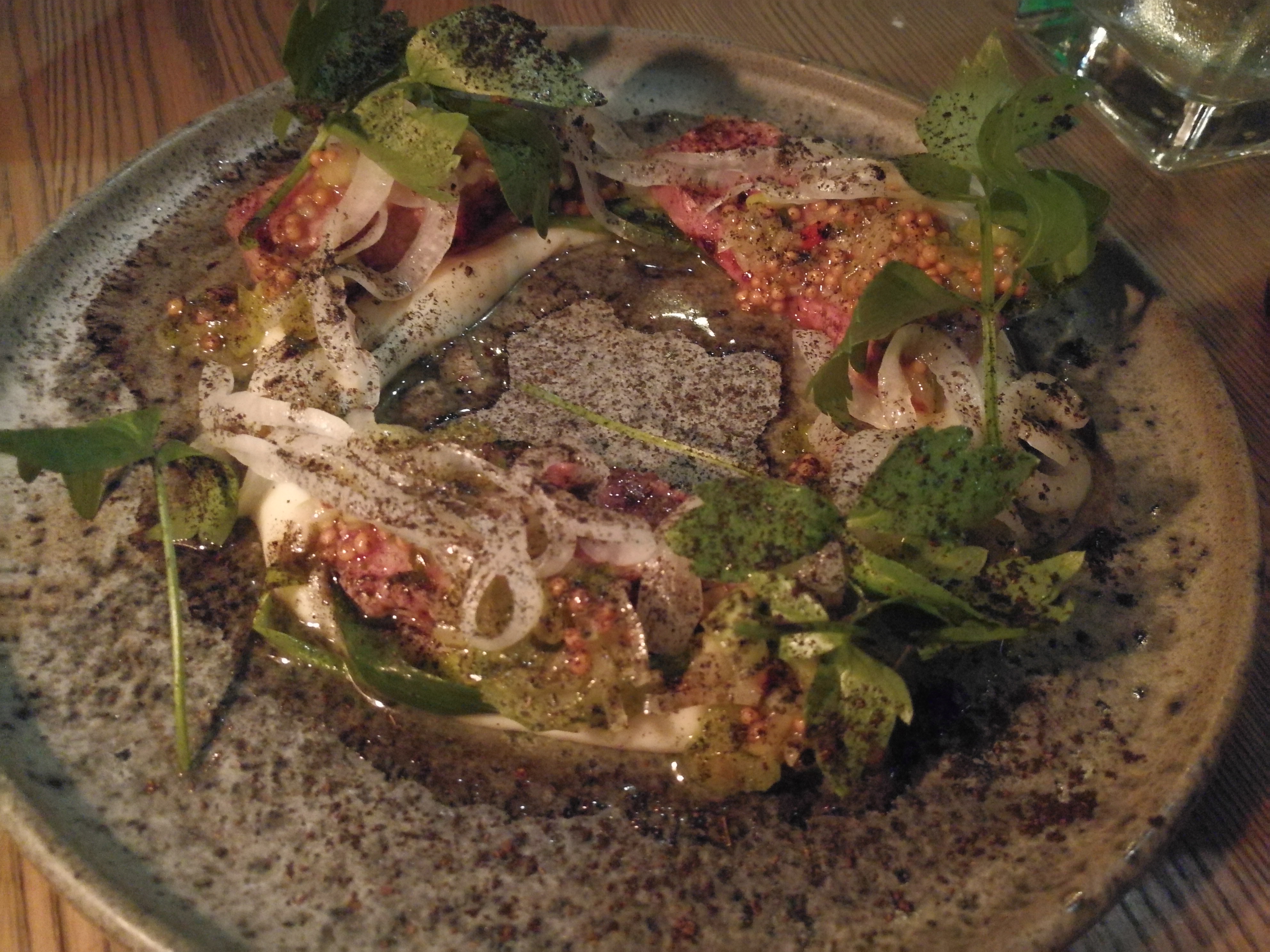 Speceriet : un tout petit restaurant, petit frère de l’étoilé Gastrologik juste à côté. Quelques grandes tables communes, des petits plats à partager, de la nouvelle cuisine Suédoise très réussie. Nous avions choisi :