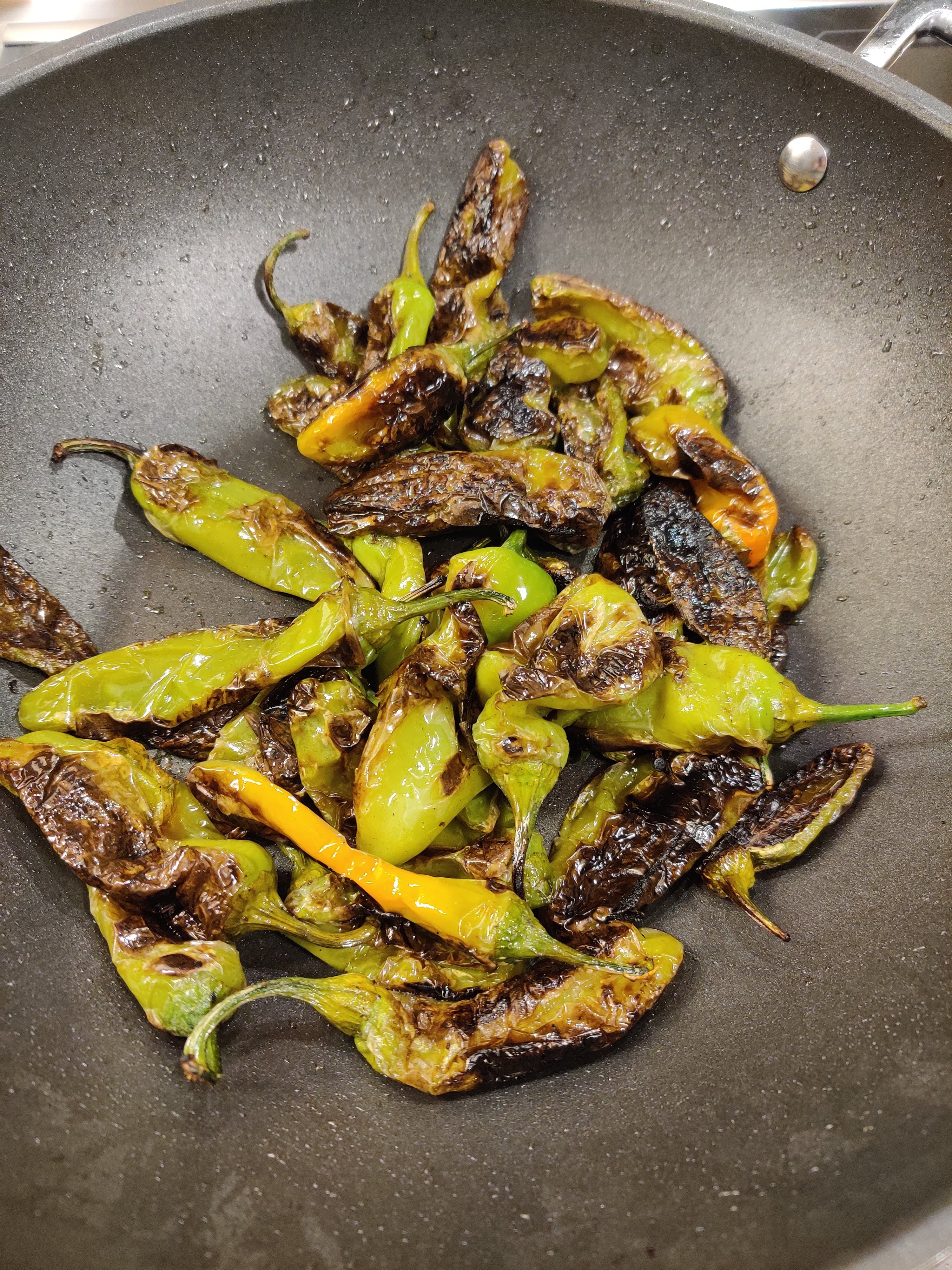Pimientos del padrónJamón ibericoCrevettes à l’ailTorreznos (porc frit)