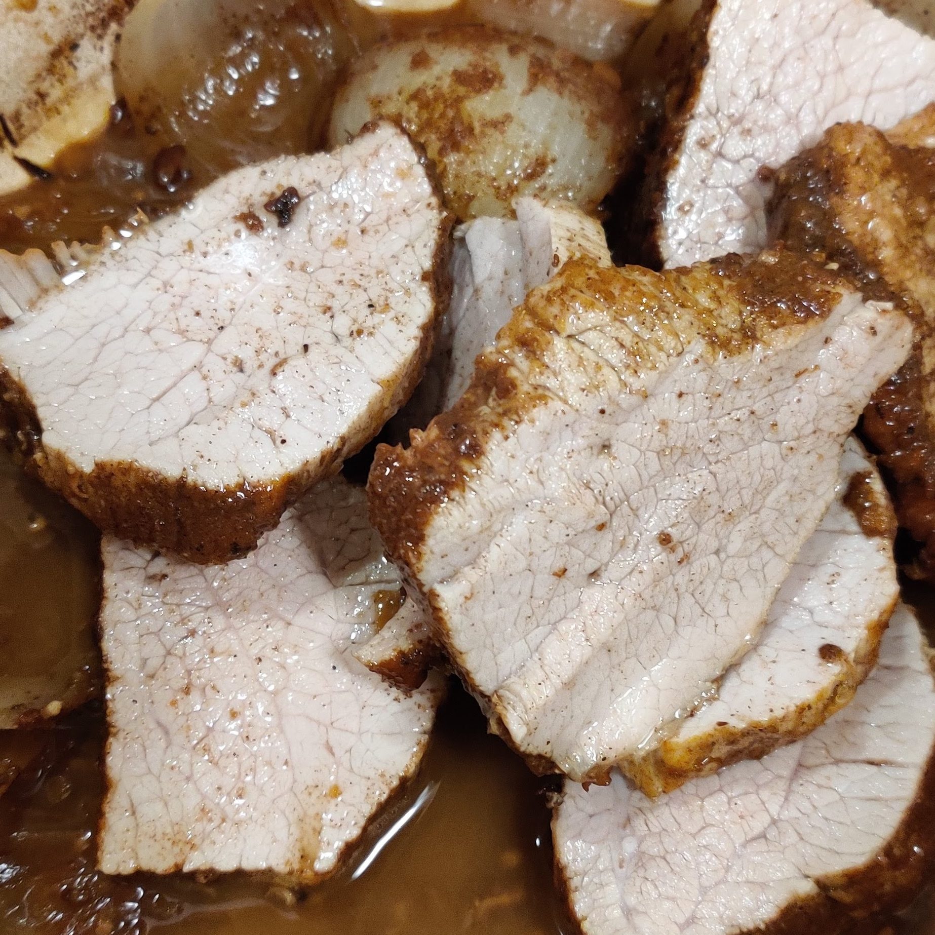 Mardi soir, j’ai improvisé un rôti de veau en cocotte aux épices pour fajitas (si si !), servi avec des petits poivrons verts poêlés.