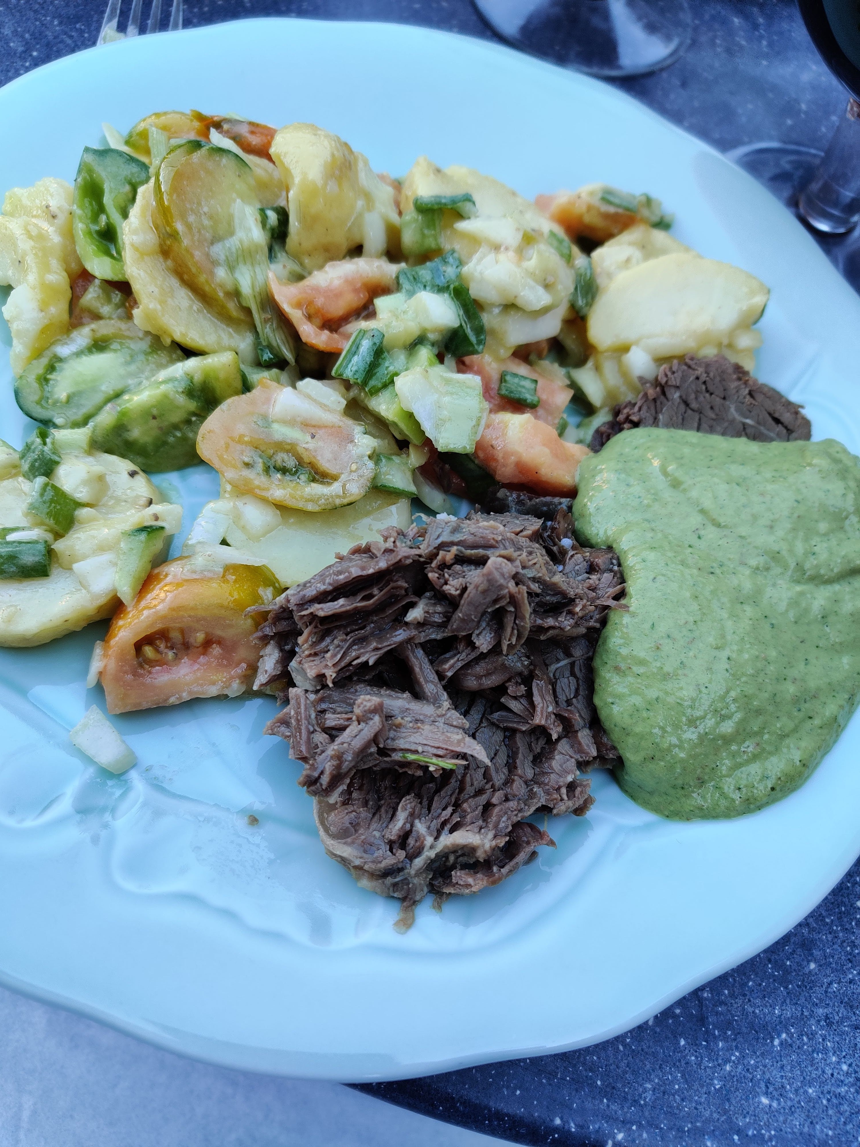 Mardi soir, nous étions de retour dans nos pénates, et après tous ces bons repas, j’ai fait simple : des pâtes au pesto.
