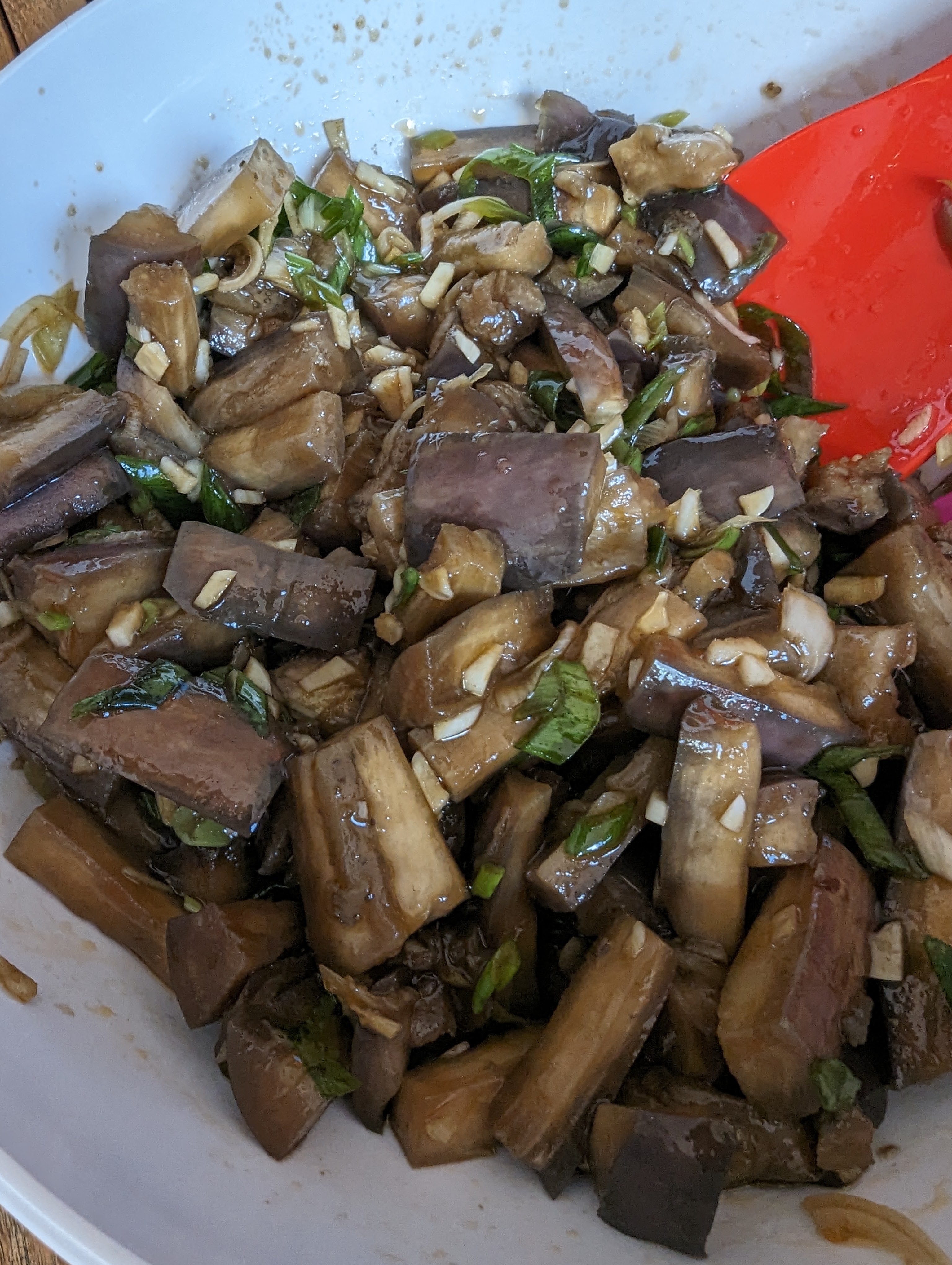Vendredi soir, j’ai improvisé un sauté de viande d’agneau hachée, aubergines, oignons et courgettes au zaatar. Pas très esthétique, mais délicieux.