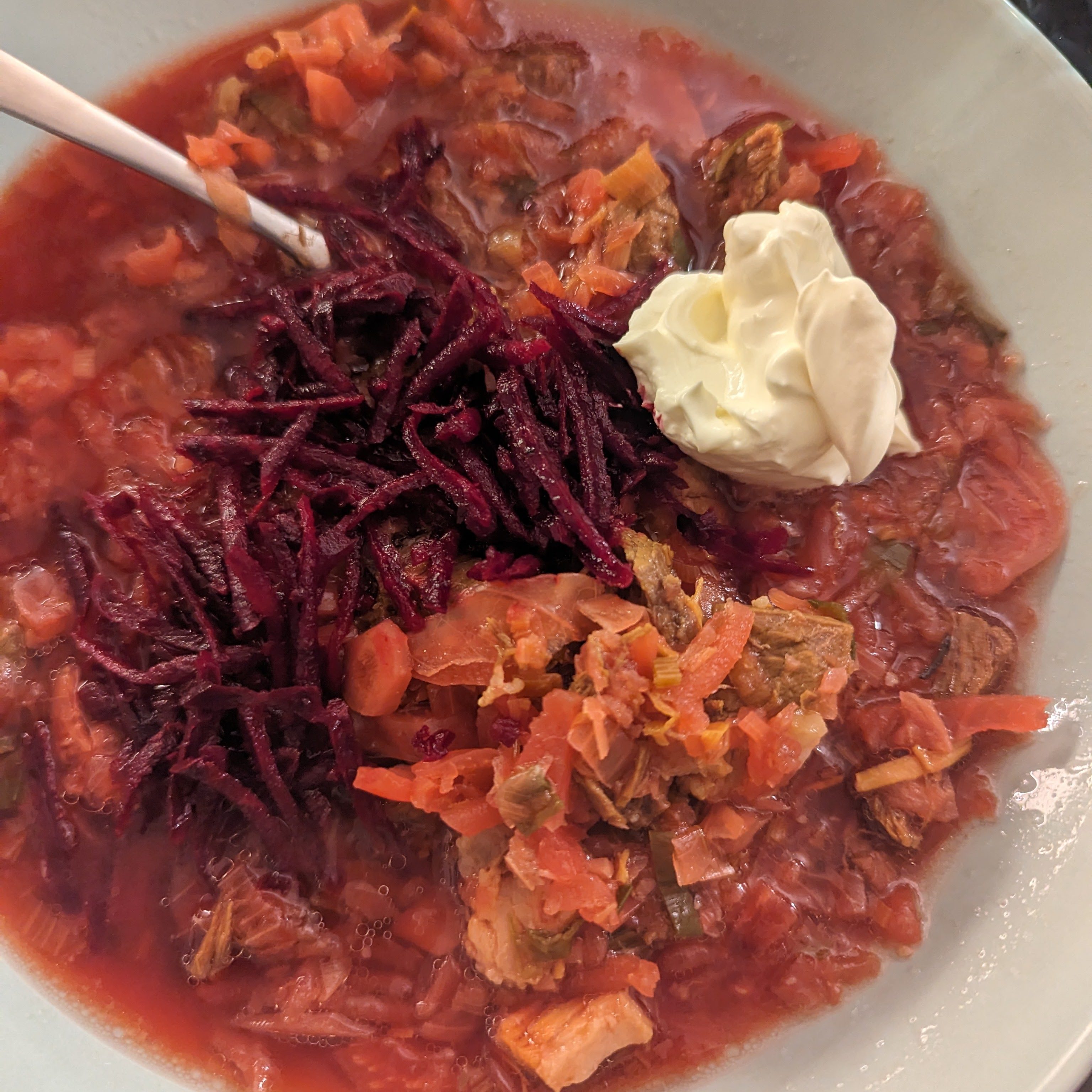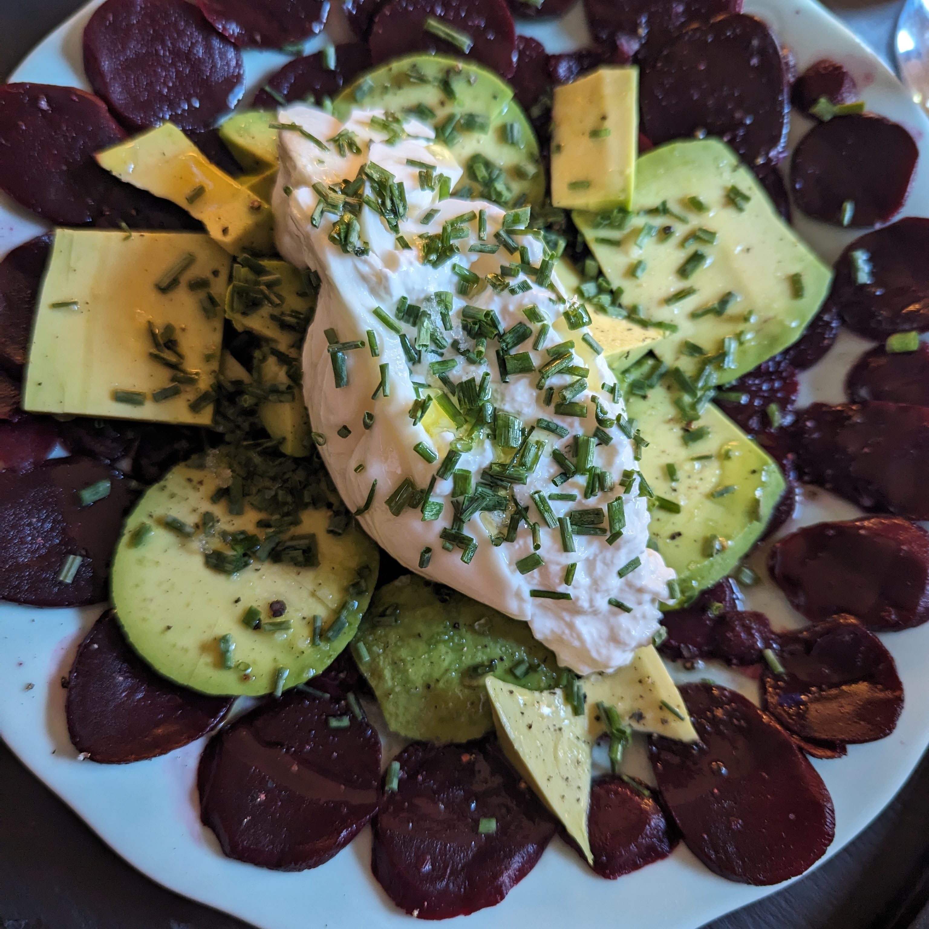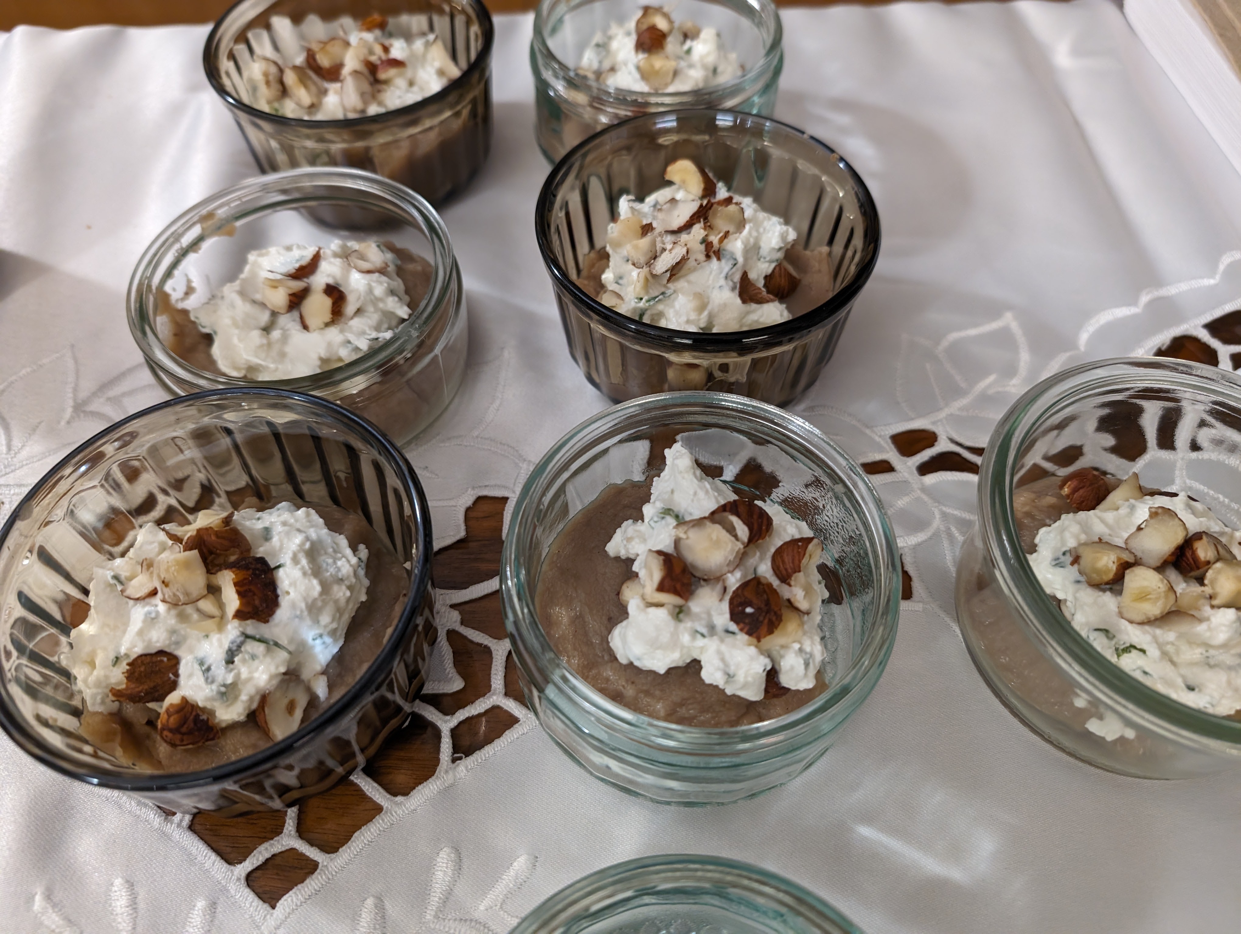 Jeudi soir, nous étions six à table. En entrée, j’ai servi des verrines de betterave et de chèvre frais (inspirées de cette recette). J’ai fait un plat principal coréen : du porc épicé au kimchi (Jaeyook kimchi bokum), servi avec du kimchi de chou et du kimchi de feuilles de moutarde (tous deux faits maison) et du riz. Nos invités ont apporté le dessert. Pas de photos : comme d’habitude, quand j’ai des invités, je m’occupe de les nourrir et j’oublie complètement de prendre les photos !