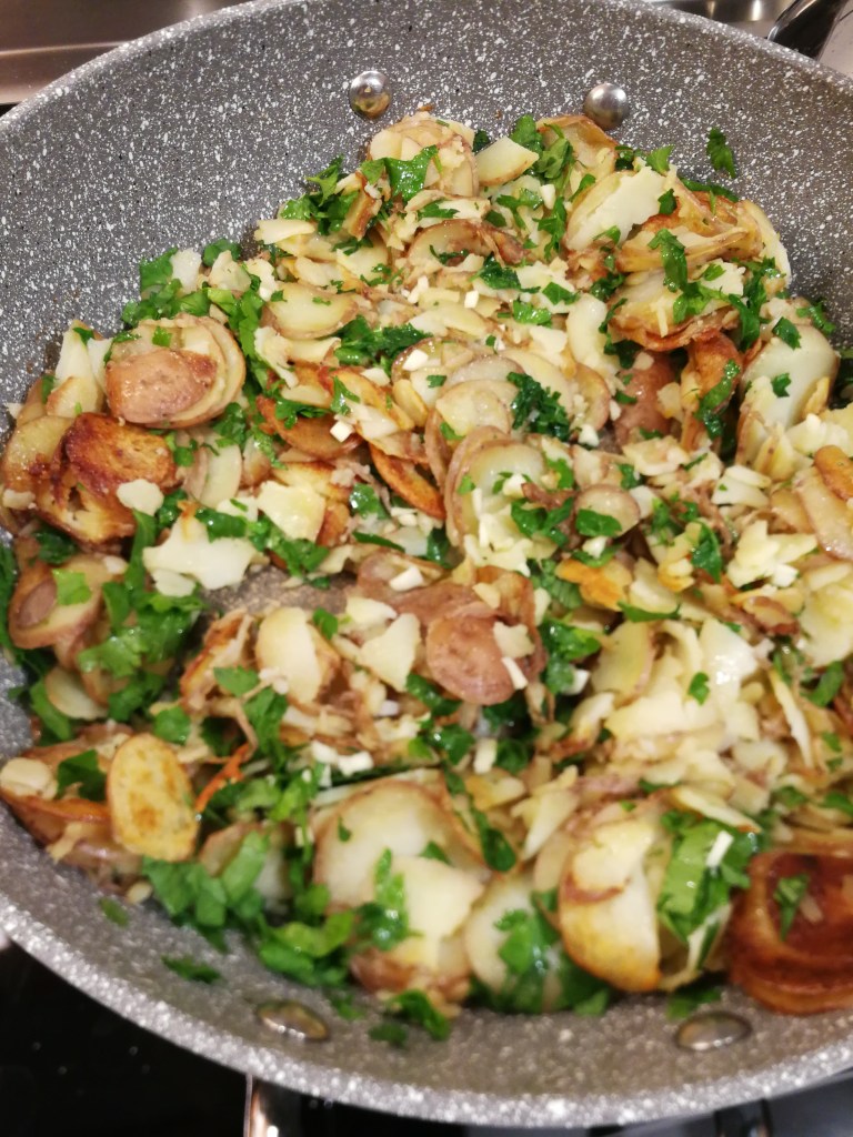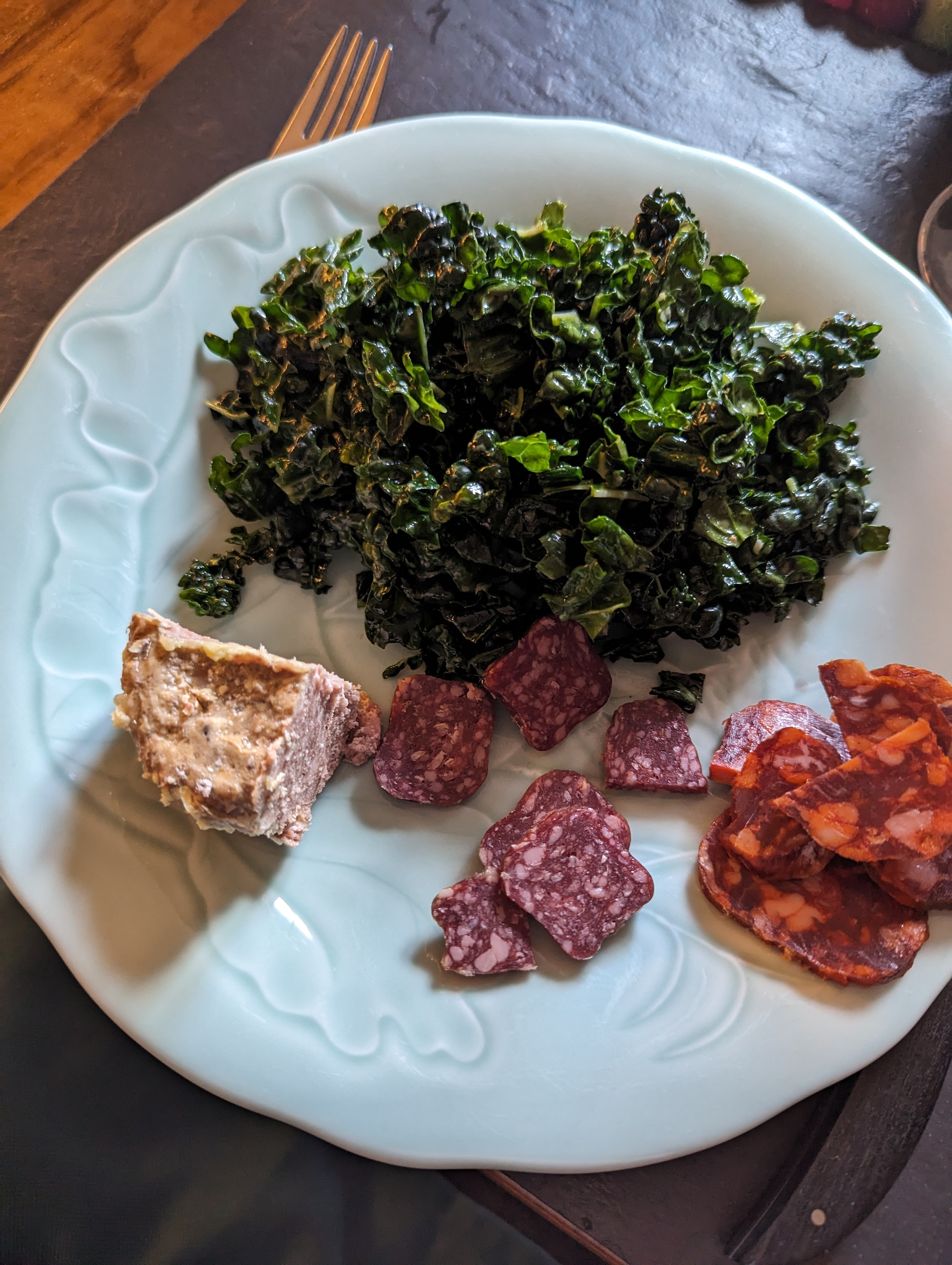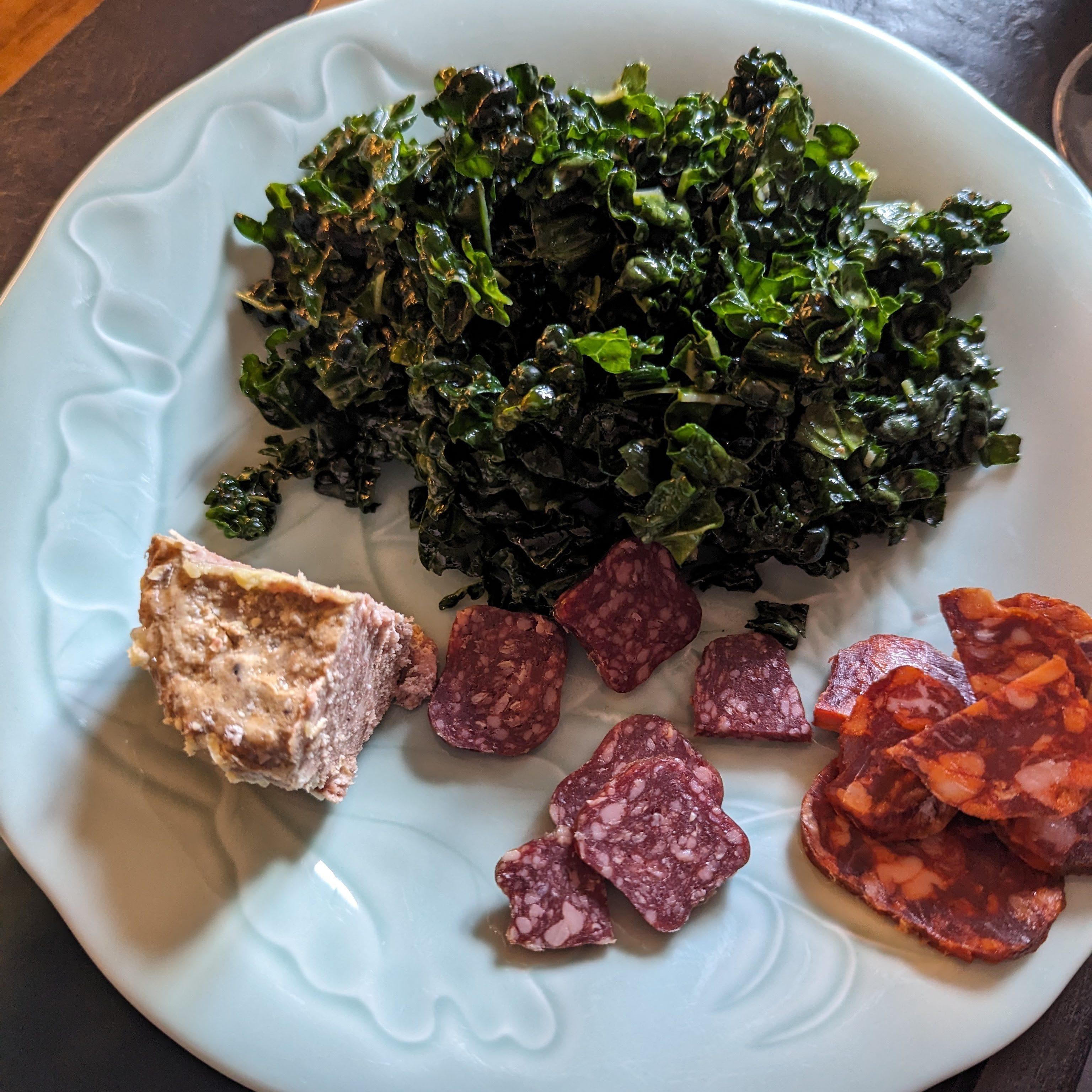 Mardi soir, j’ai fait une potée de pois chiches au kale et au chorizo, en remplaçant les épinards par du kale dans cette recette. C’était excellent.
