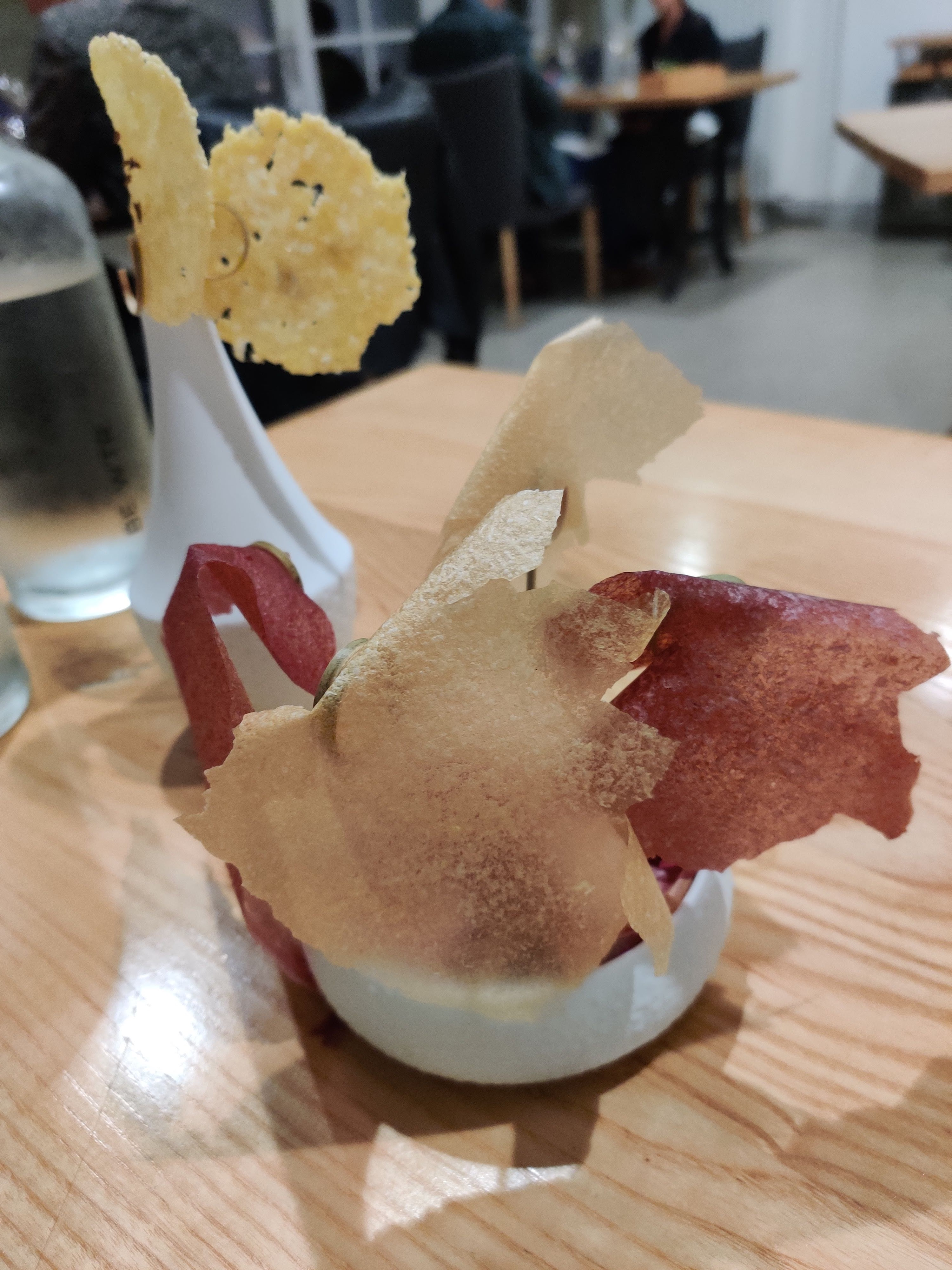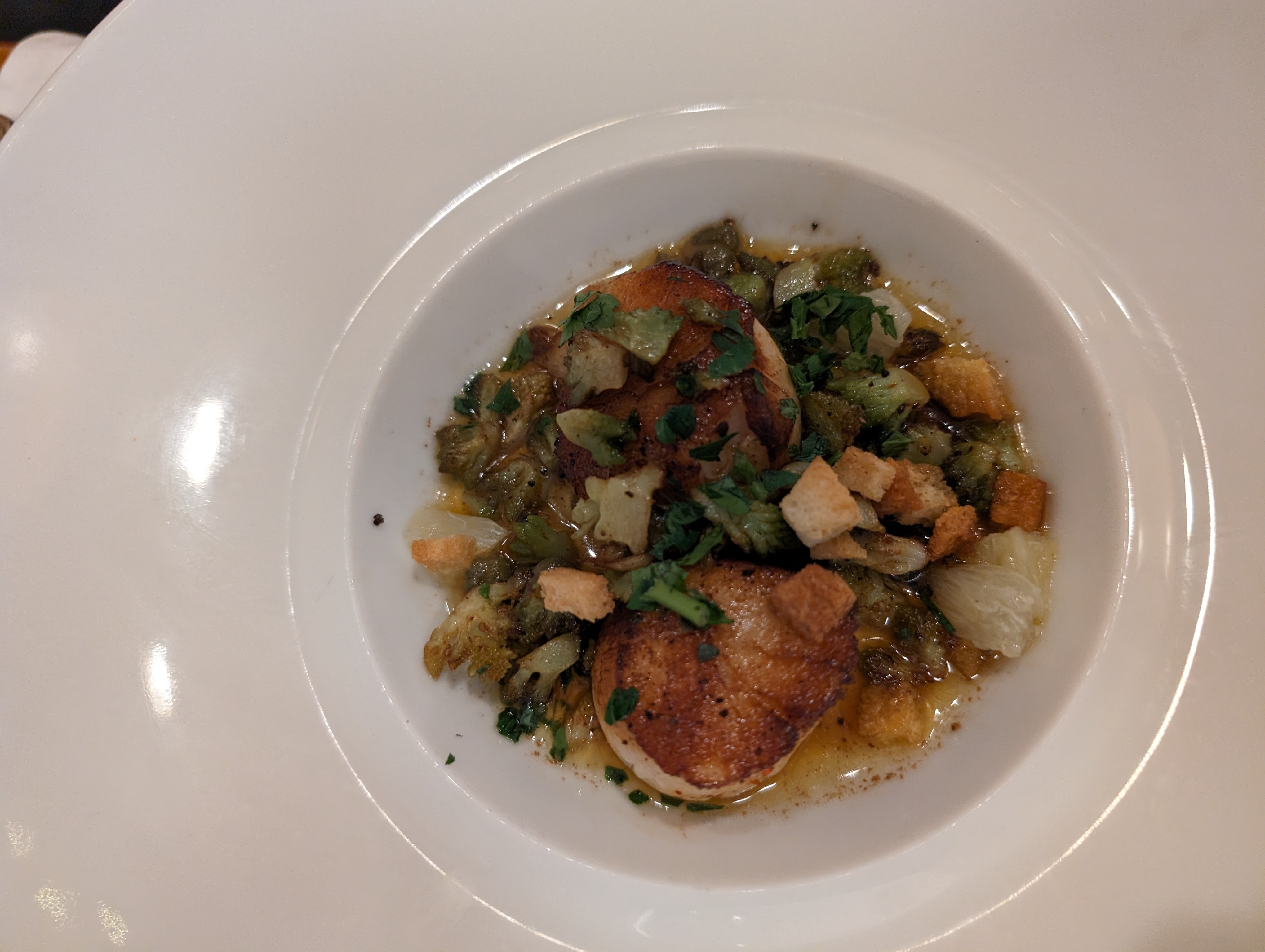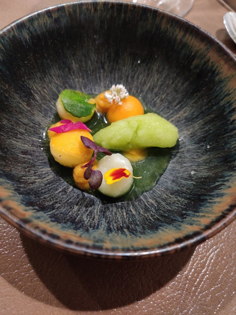 Samedi soir, nous avons fait un délicieux repas à La Micheline, à Genève. Nous avons pris le menu dégustation en quatre temps avec accord mets-vins, et c’était fabuleux (avec pour ma part un amour tout particulier pour la première entrée de noix de saint-jacques). En images :