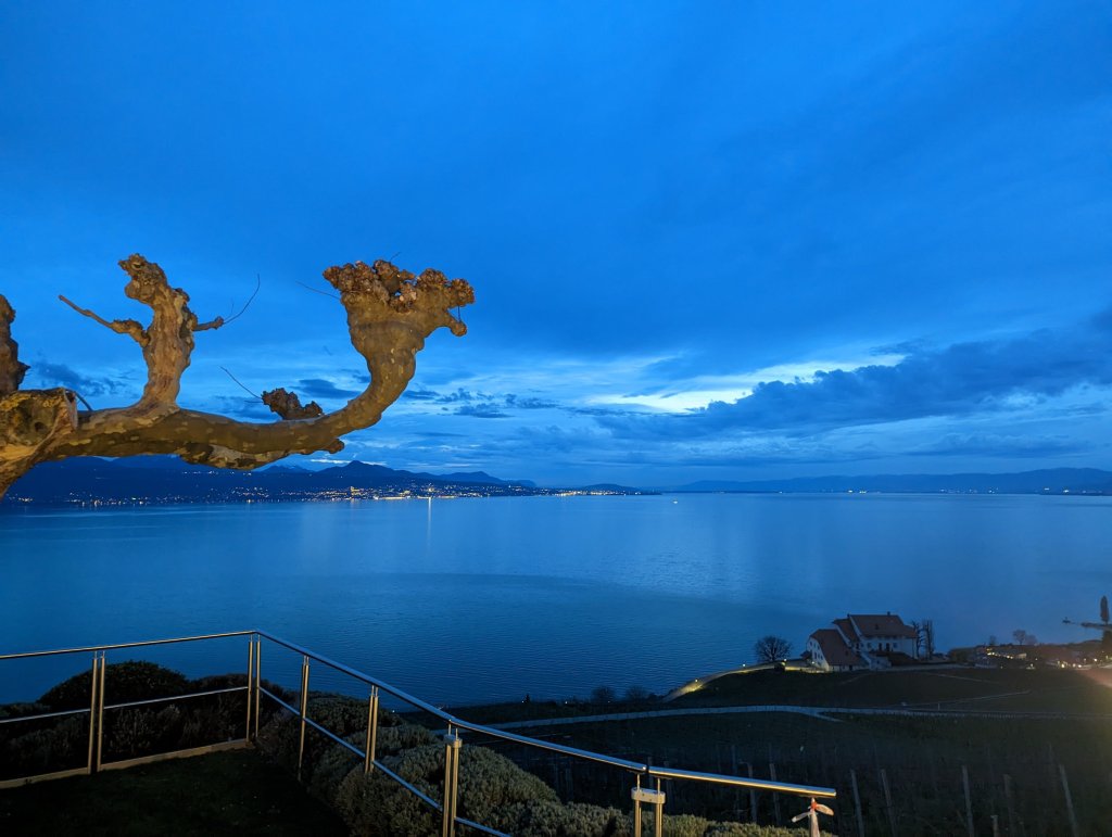 Vendredi soir, nous avons fait un dernier repas chez Denis Martin à Vevey – dernier parce qu’il prend sa retraite tout bientôt (le 24 mars, si je me souviens bien). C’est bien dommage, car non seulement c’est délicieux, mais l’expérience est totalement unique et inoubliable, ce n’est pas un restaurant comme les autres et il me manquera. Voyez le spectacle :