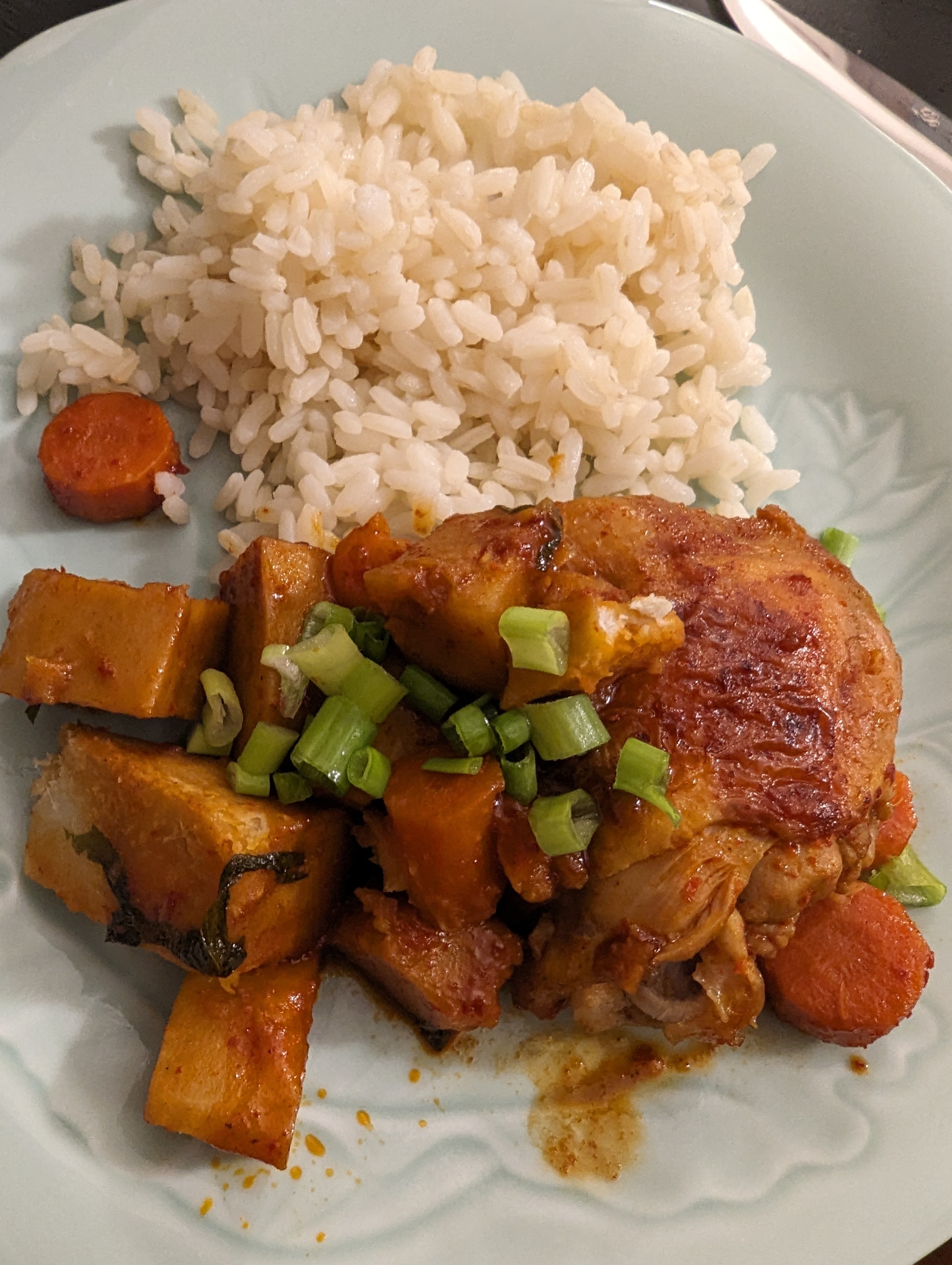 Lundi soir, j’ai servi du poulet Yassa (j’adore ça, et cette recette-là est vraiment impec) avec du sorgho concassé (une nouveauté, du sorgho vaudois, très bon).