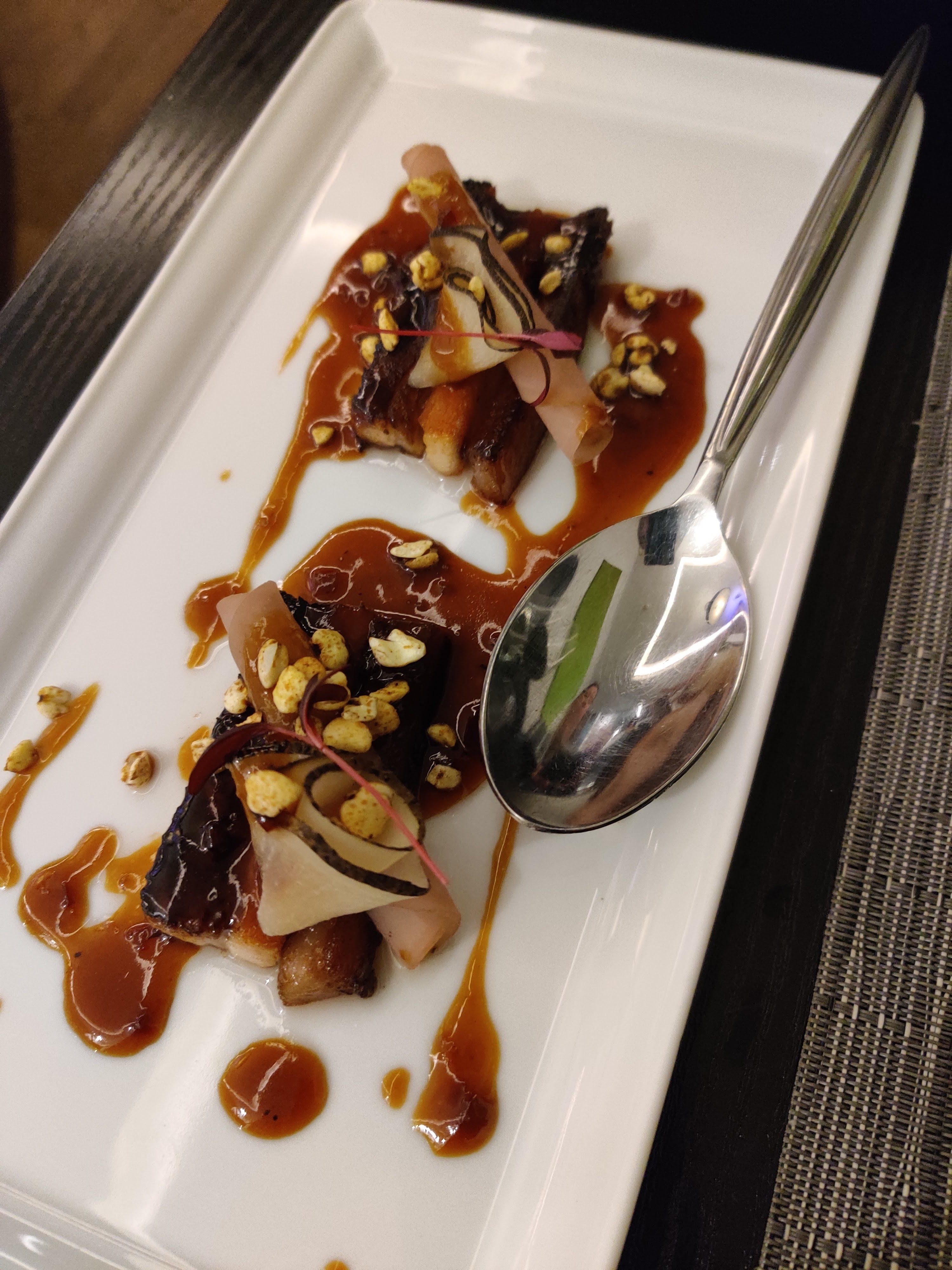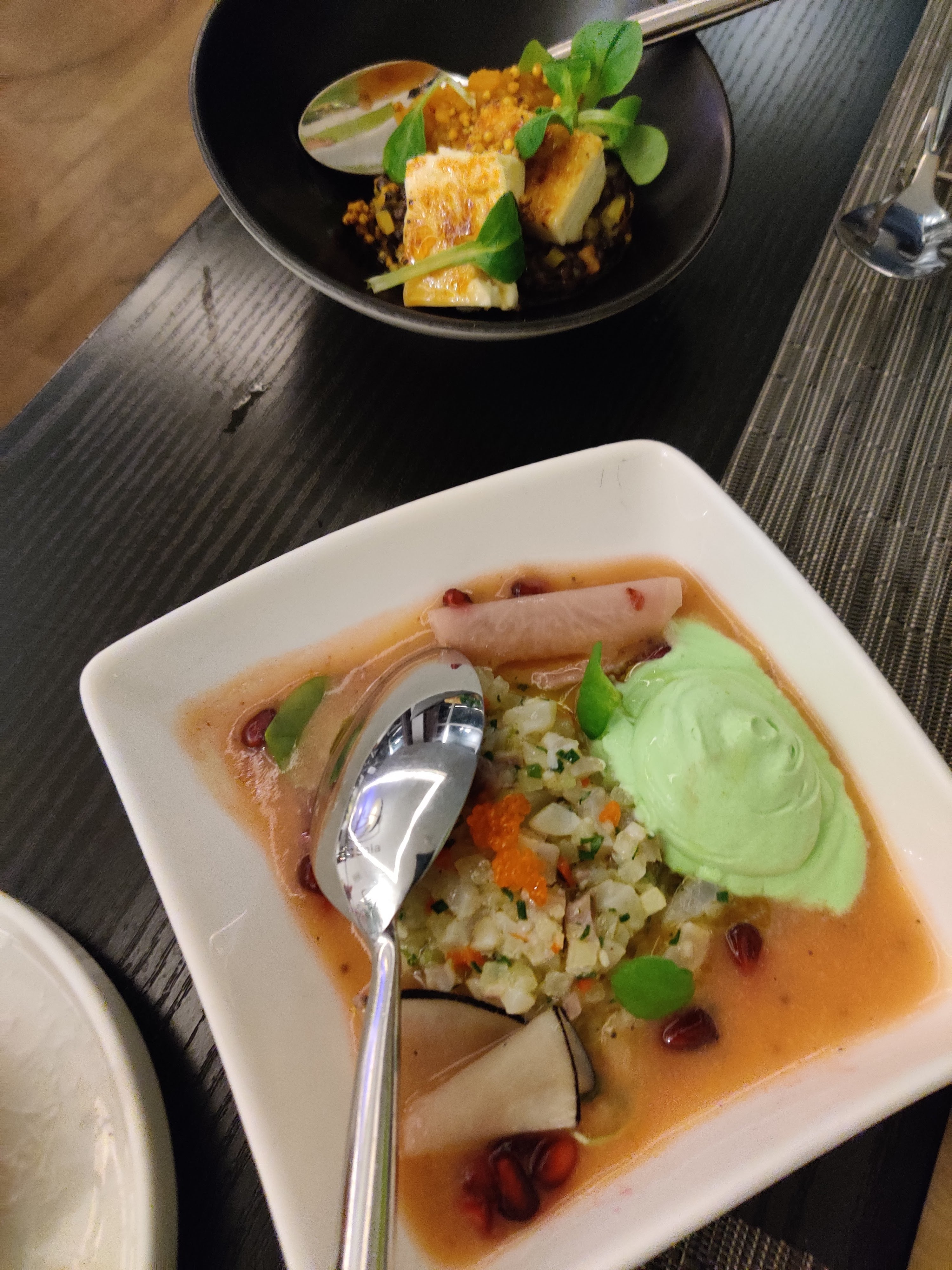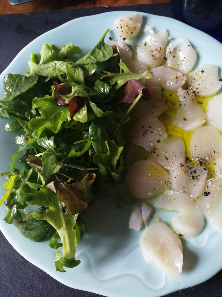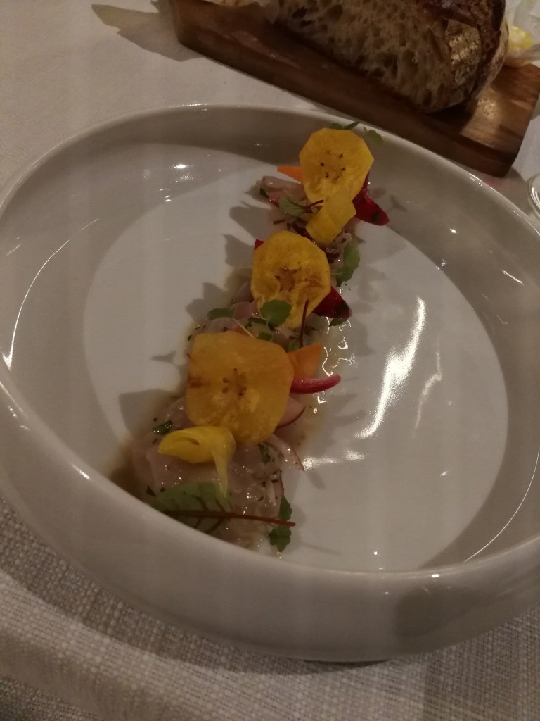 Samedi soir, nous avons fait un excellent repas au Guanaco à Morges. Nous avons trouvé que c’était encore meilleur qu’avant (nous y étions déjà allés deux ou trois fois), avec des goûts plus fins et des cuissons superbement maîtrisées. J’ai dîné de deux entrées successives : un tiradito de saumon à tomber, et des anticuchos de boeuf fabuleux.