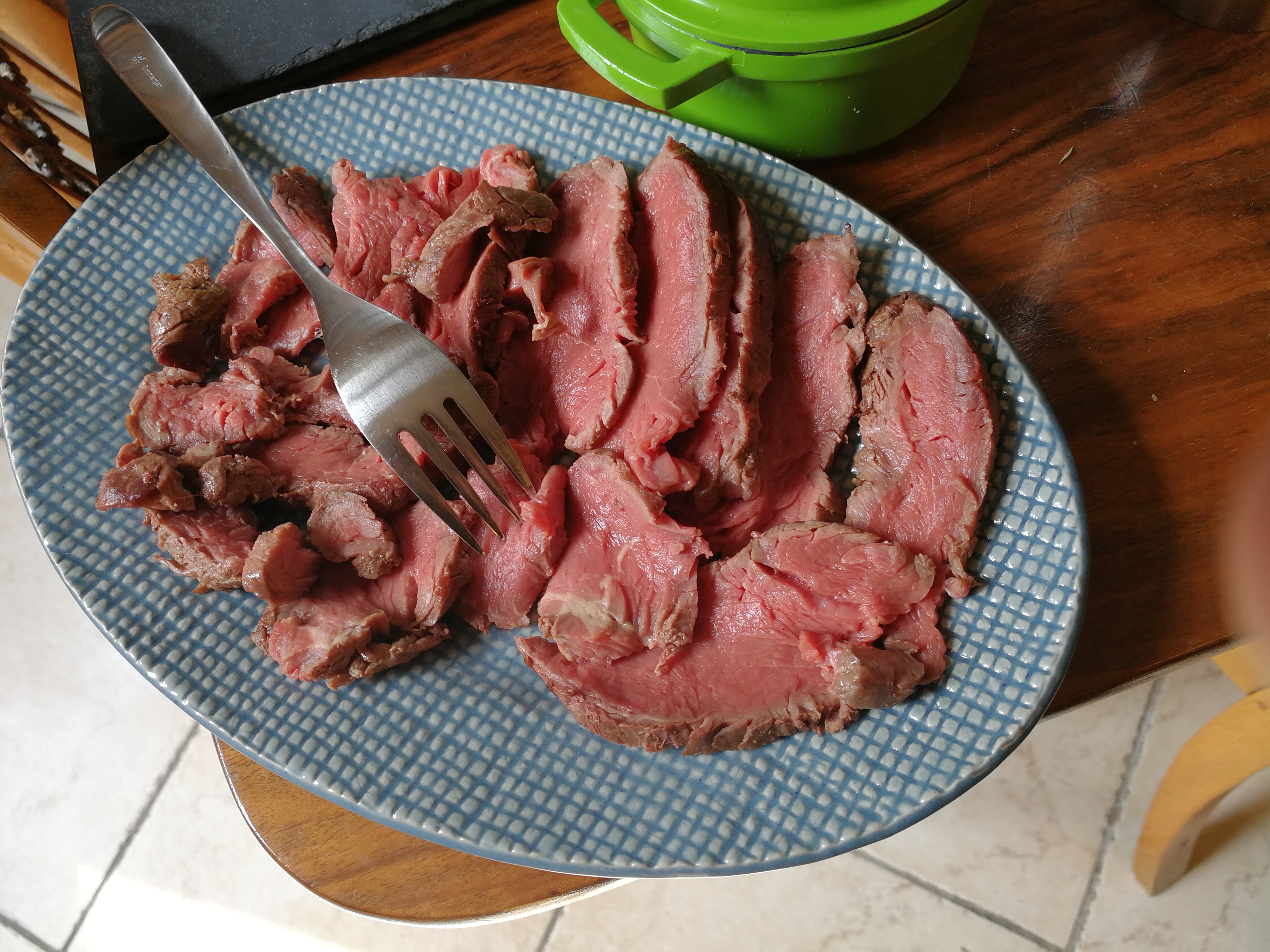 - Accompagnements: pommes de terre rôties (au sel de paprika), carpaccio de betteraves (avec fromage, orange sanguine et oignons rouges), tomates (avec anchois, câpres, oignons rouges et basilic)
