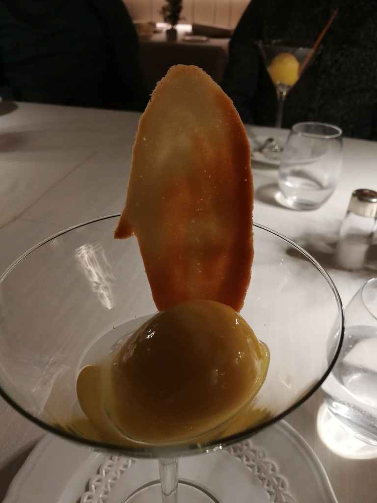 Vendredi soir, nous avons mangé à la Brasserie Millenium. J’ai d’abord pris leur fameux pâté en croûte (spécialité du chef, excellent, mais j’aurais apprécié un chouïa de salade verte avec), puis la quenelle de brochet aux écrevisses. Elle était délicieuse, la sauce aussi, mais malheureusement grillée à l’extérieur – j’aurais préféré qu’elle ait partout cette texture très fondante fantastique qu’elle avait à l’intérieur.