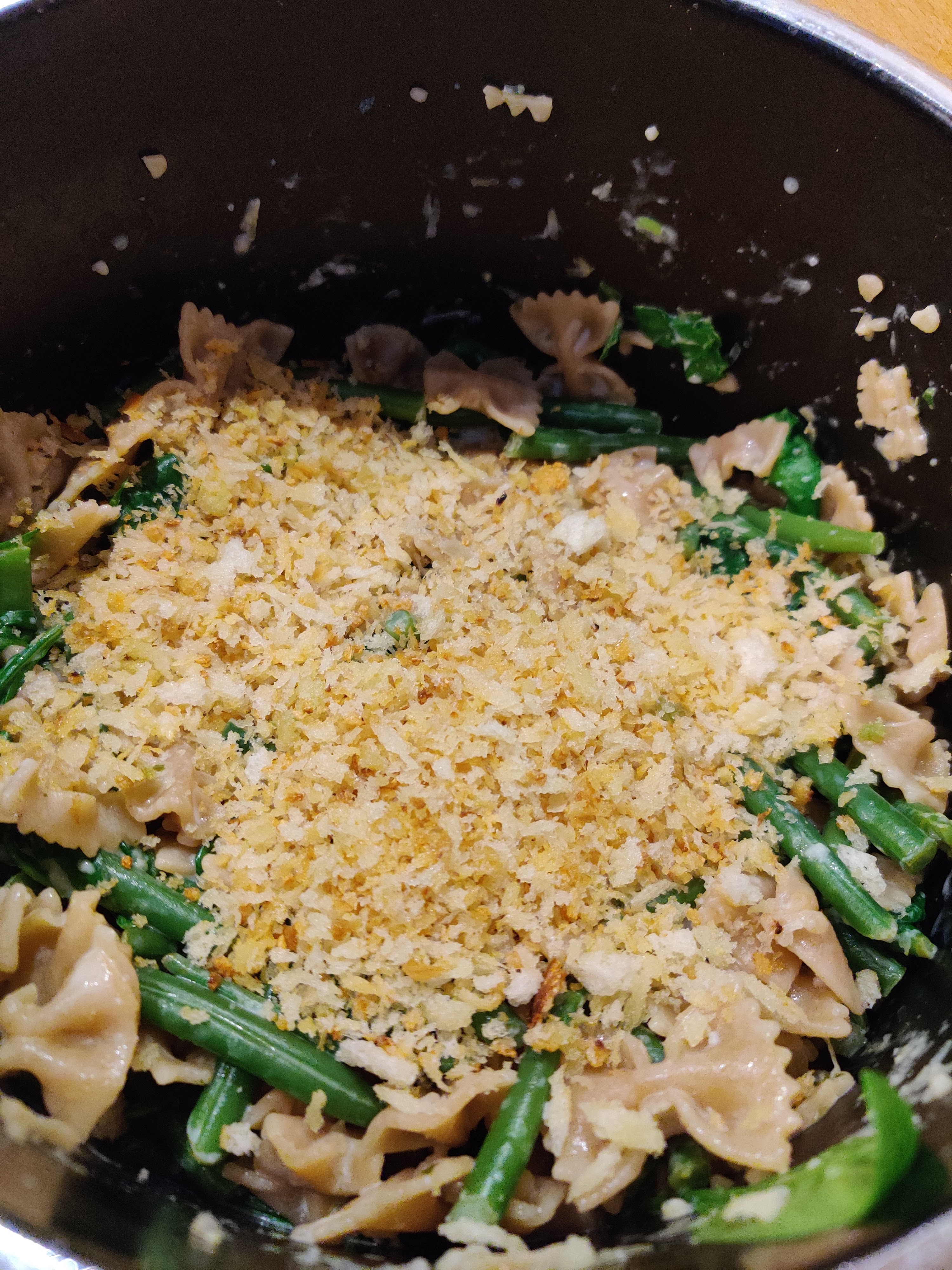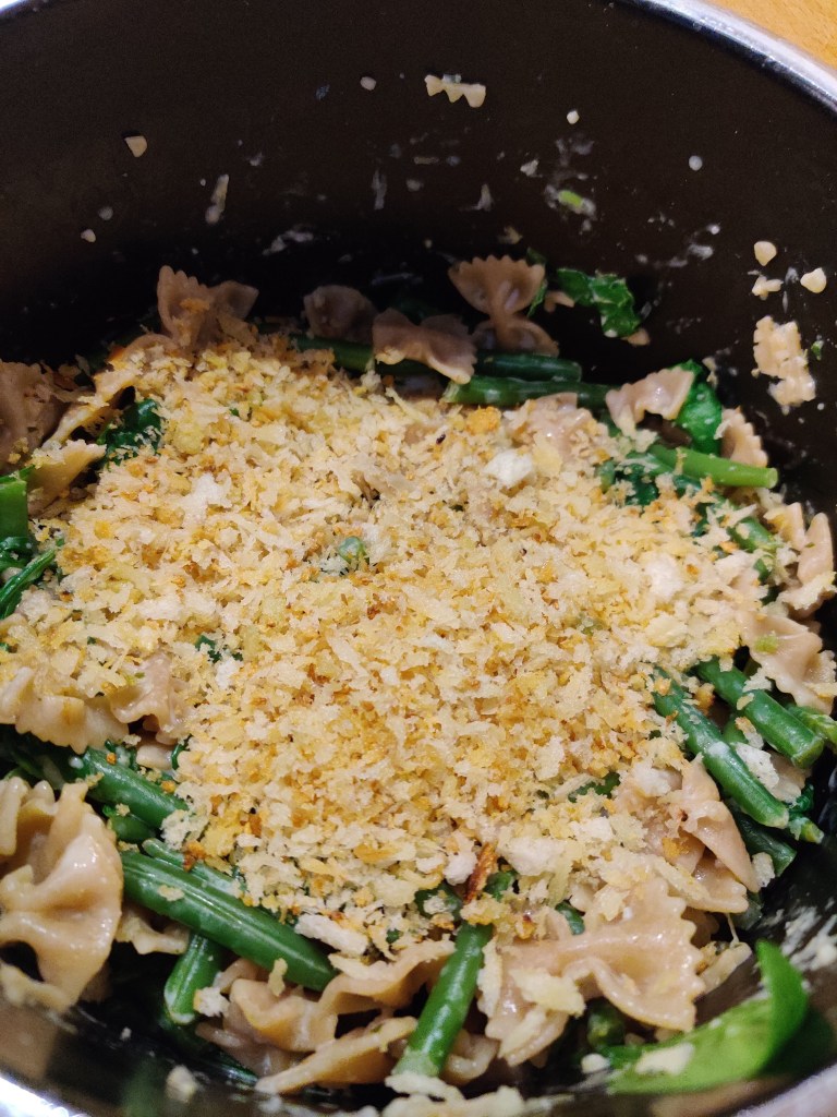 Mercredi soir, j’ai fait une salade César au chou noir (et y ai adjoint des morceaux de poulet, non prévus dans la recette, pour en faire un plat complet), très réussie.
