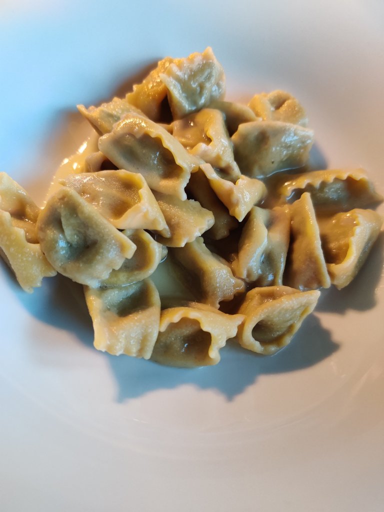 Jeudi soir, nous sommes allés dîner dans les locaux de Qoqa pour un repas organisé par eux, et préparé par le cuisiner Federico Gallo. C’était une soirée très sympathique, j’adore le concept de table d’hôte pour rencontrer et discuter avec des gens qu’on ne connaît pas, en plus l’endroit est très convivial et chaleureux. Le repas était bon, mais franchement, pas à la hauteur d’un étoilé Michelin. Beaucoup, beaucoup de trucs en pâte (le chou, la pasta mista, la focaccia pour la scarpetta, le poulet en croûte), pratiquement pas de légumes. Le dessert était vraiment fantastique par contre – des cèpes en dessert, qui l’eût cru !
