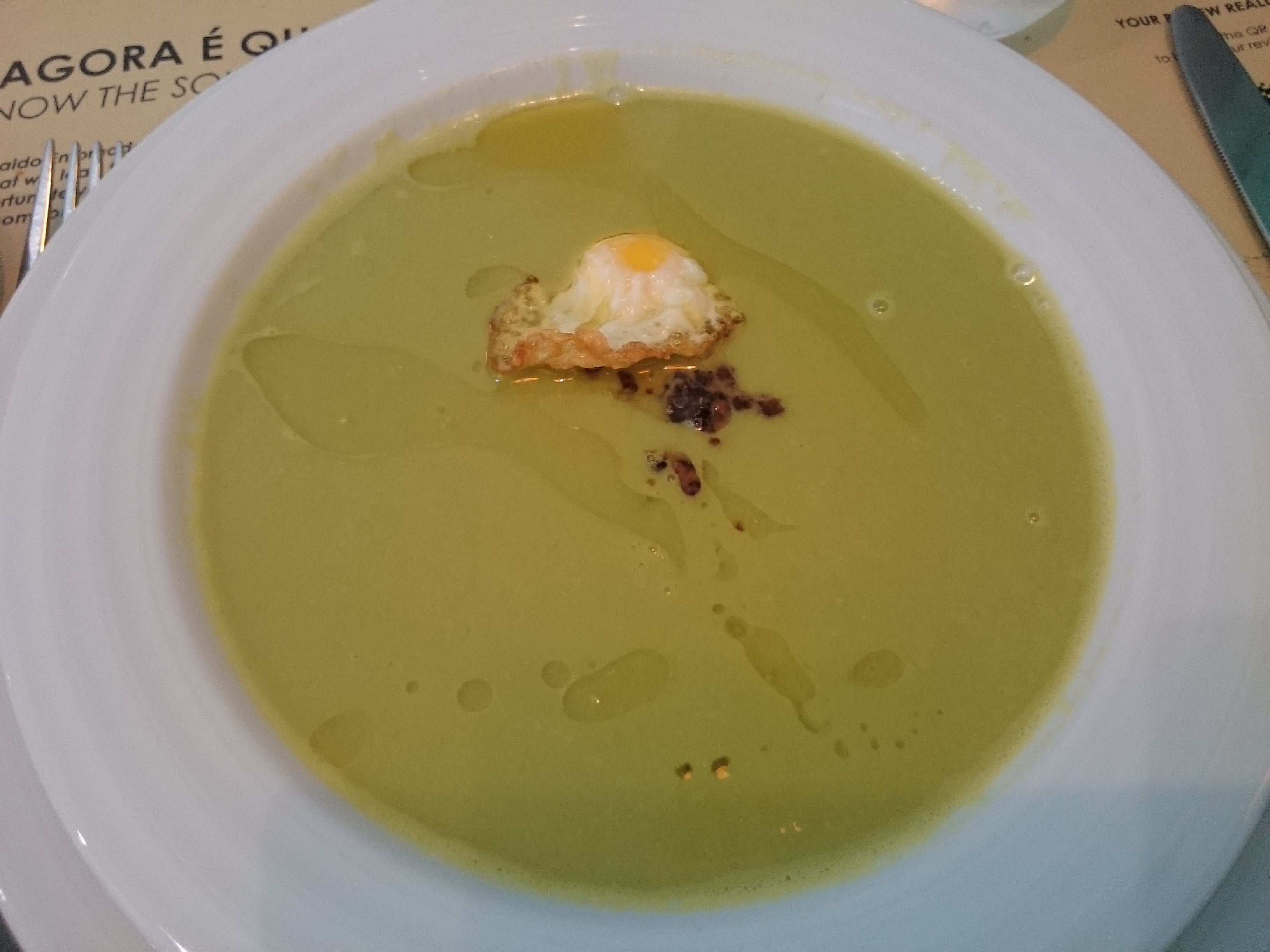 C’est un autre coup de cœur, trouvé absolument par hasard (nous sommes passés par une rue peu fréquentée et l’endroit ainsi que le menu exposé en devanture m’ont plu), qui propose une cuisine portugaise moderniste remarquable. J’y ai mangé une crème de petits pois avec crumble de saucisse et œuf de caille