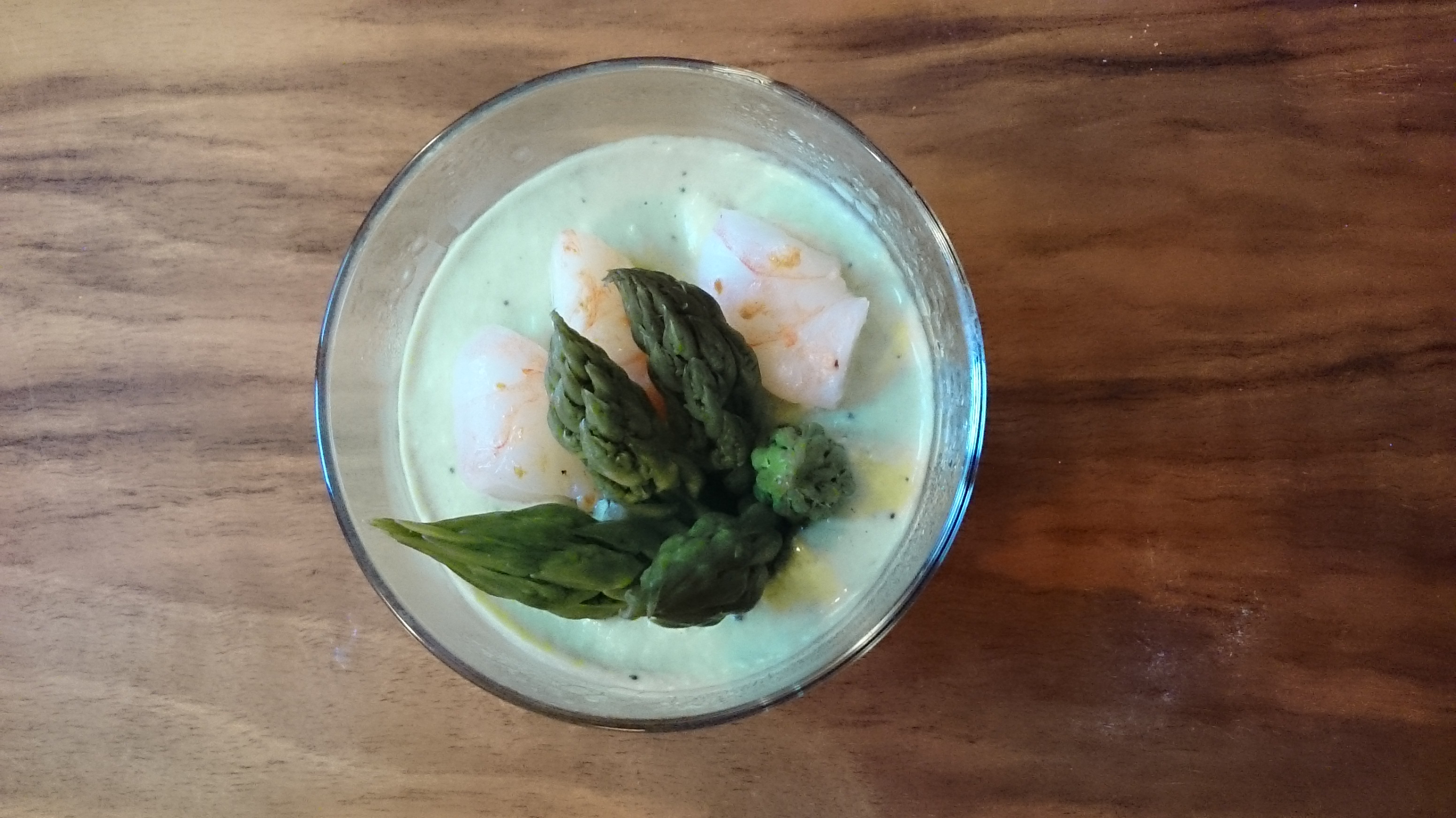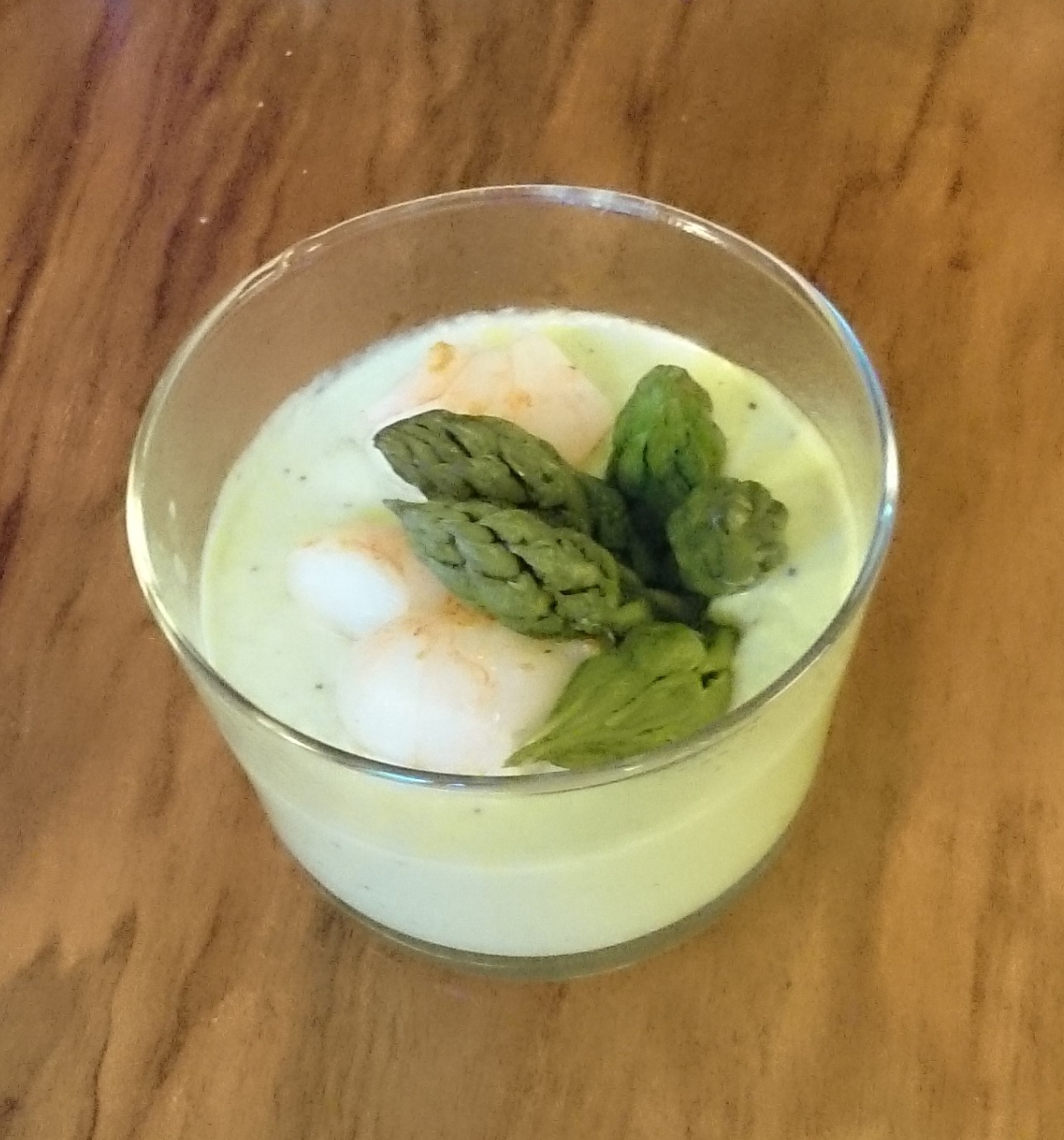 Puis une mini-soupe, un poisson, une viande et un plat au fromage :