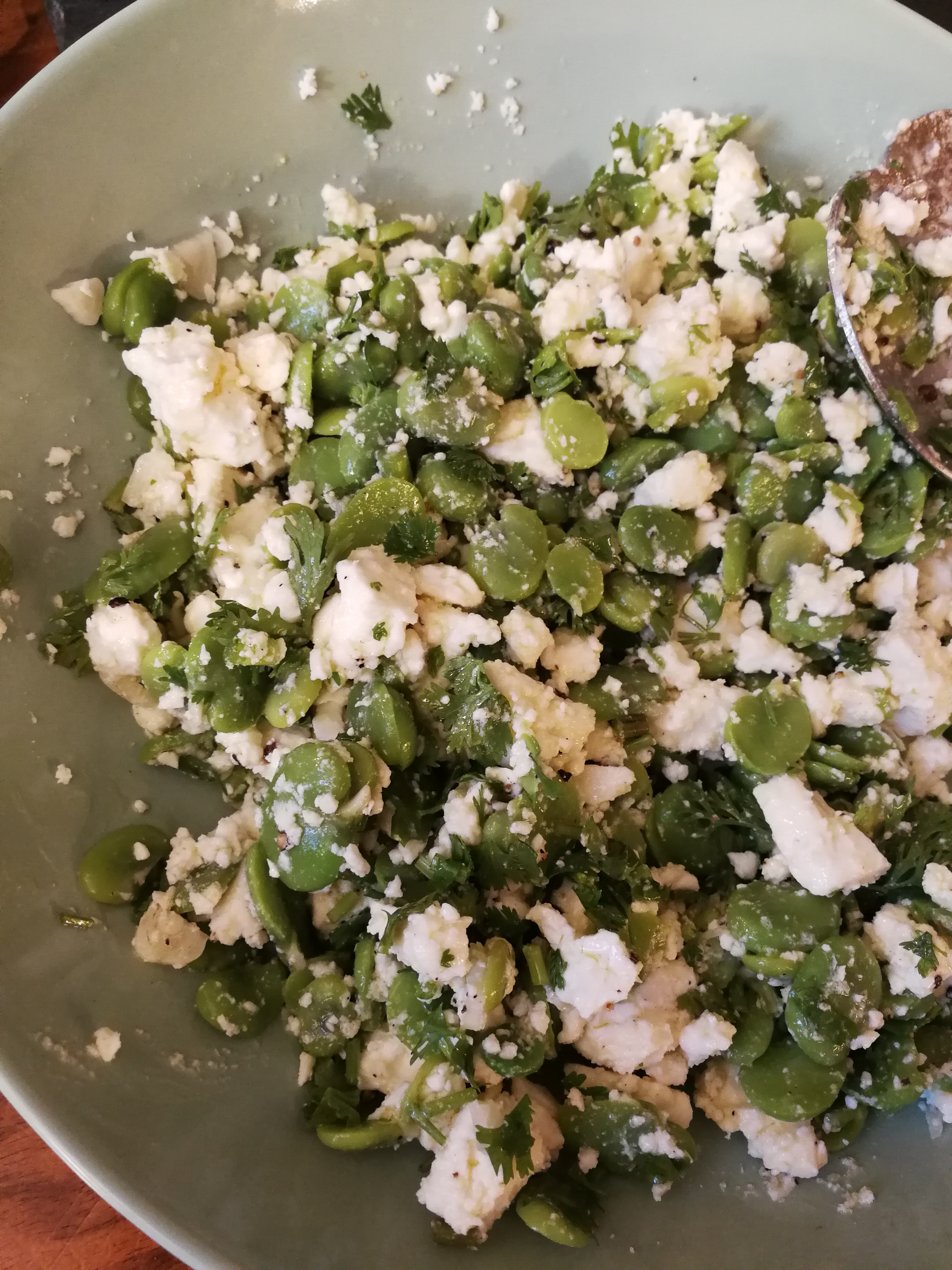 Mercredi soir, j’ai passé des coquilles saint-jacques à la poêle, et l’ai ai accompagnées de fèves à la crème particulièrement réussies.