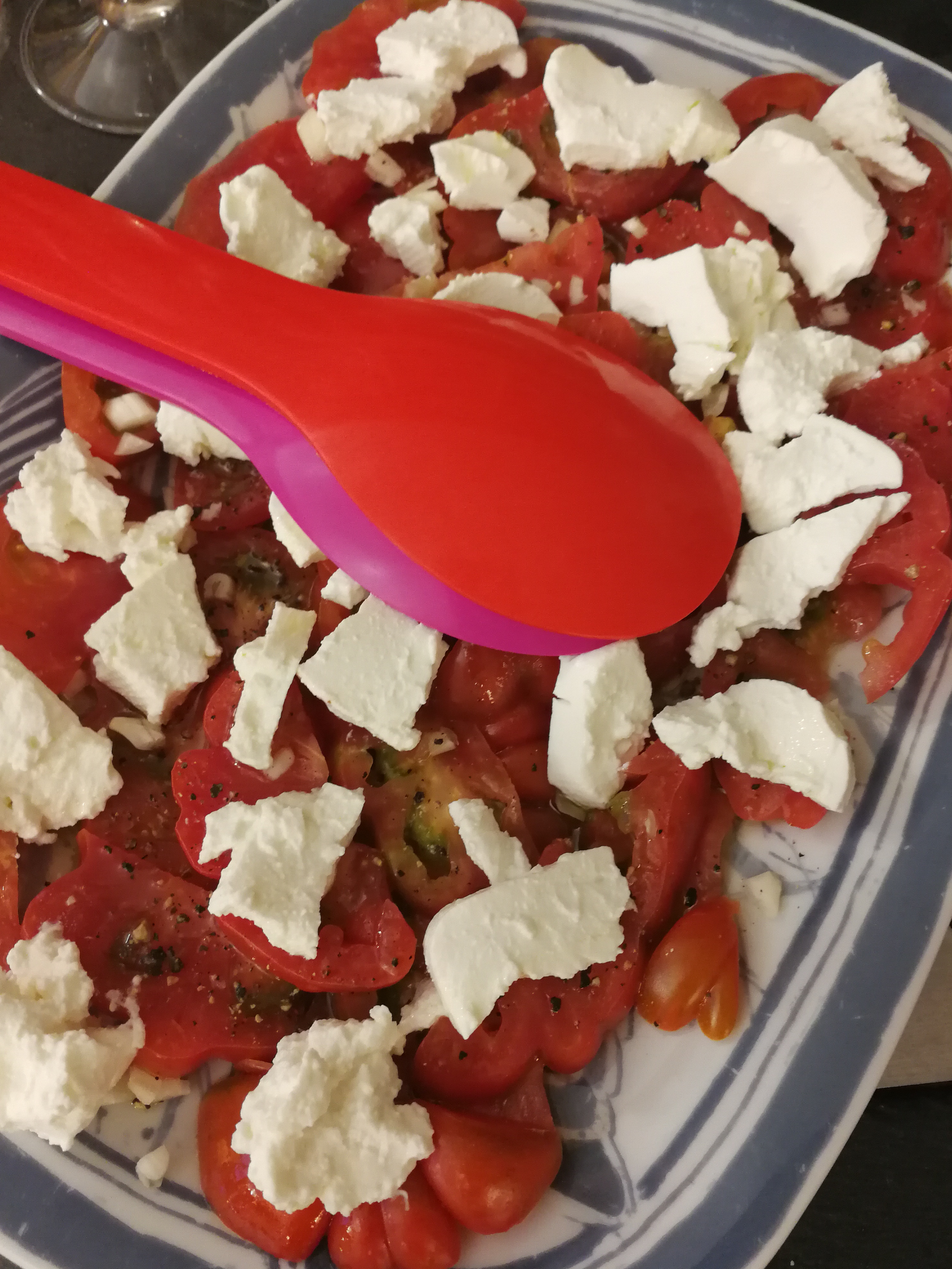 Etant absents le weekend, nous n’avons pas pu faire le marché, et j’ai décidé de tirer parti de mon congélateur, qui est bien rempli. J’ai fait quelques courses le mardi, qui se sont limitées à trois citrons, de la salade verte, du pain et de la mozzarella – tout le reste était déjà chez moi, c’est vous dire que j’ai des provisions !
