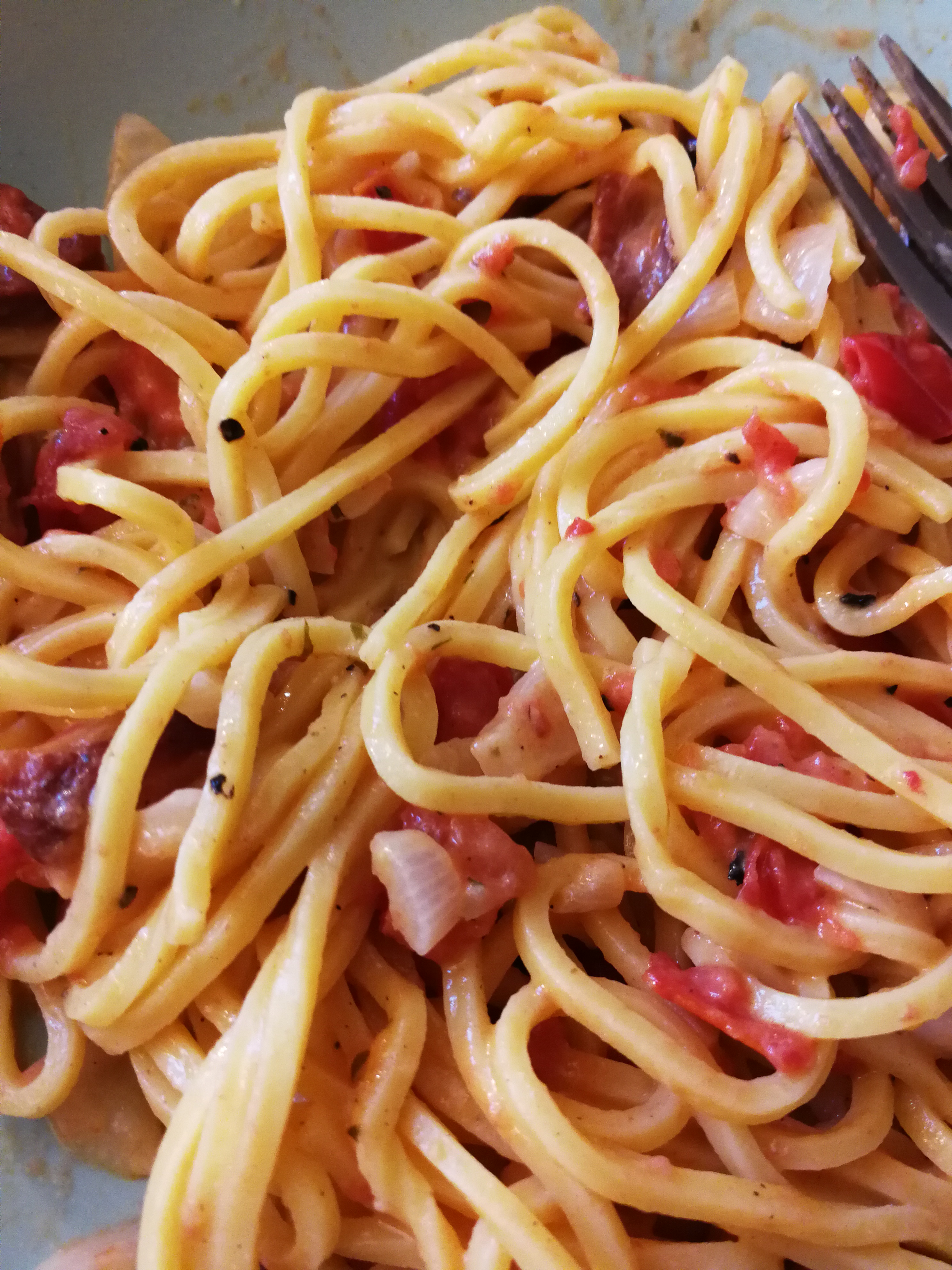 Dimanche soir, j’ai fait des casarecce alla grappa, excellents.