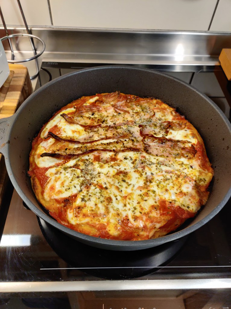 Jeudi soir, j’ai fait une pizza aux fonds d’artichauts, mozzarella et guanciale en testant une nouvelle recette de pâte à index glycémique bas. Je vous dis tout de suite, la pâte avait assez bon goût, mais n’avait absolument rien à voir avec de la pâte à pizza. En lisant la recette, j’avais imaginé qu’elle ressemblerait plutôt à de la pâte à tarte flambée (fine et croustillante), mais non, elle était toute molle. Bref, bof bof bof. J’ai servi une salade verte en accompagnement.