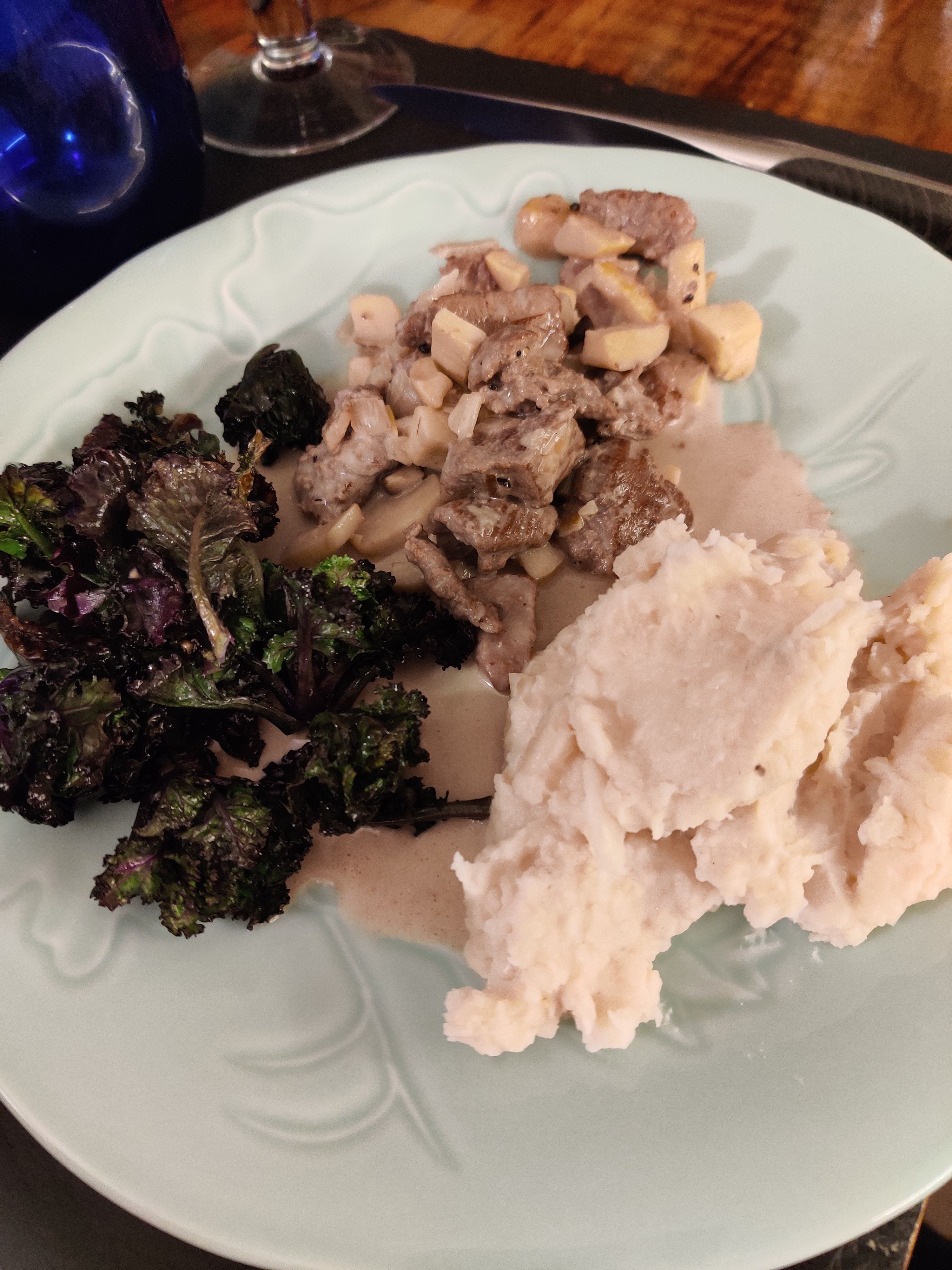 Jeudi soir, j’ai mijoté une cocotte de boeuf aux carottes, recette trouvée dans un magazine Marmiton. J’ai utilisé de la joue de boeuf (qui est un morceau que j’affectionne tout particulièrement, il est plein de goût et devient fondant à la cuisson) et l’ai accompagnée de taro cuit à l’eau et de broccolinis sautés. Un dernier plat bien hivernal, réconfortant et savoureux…