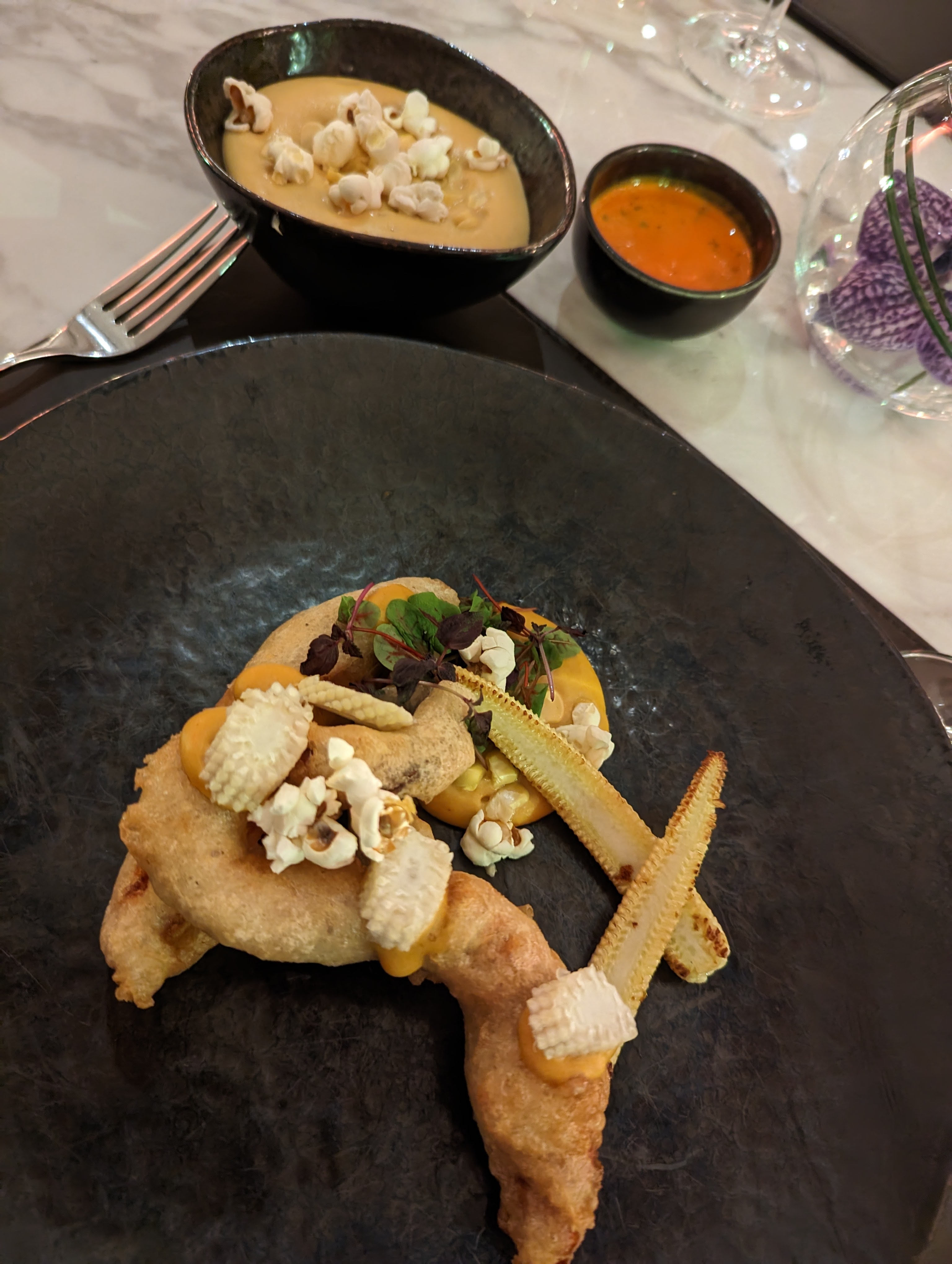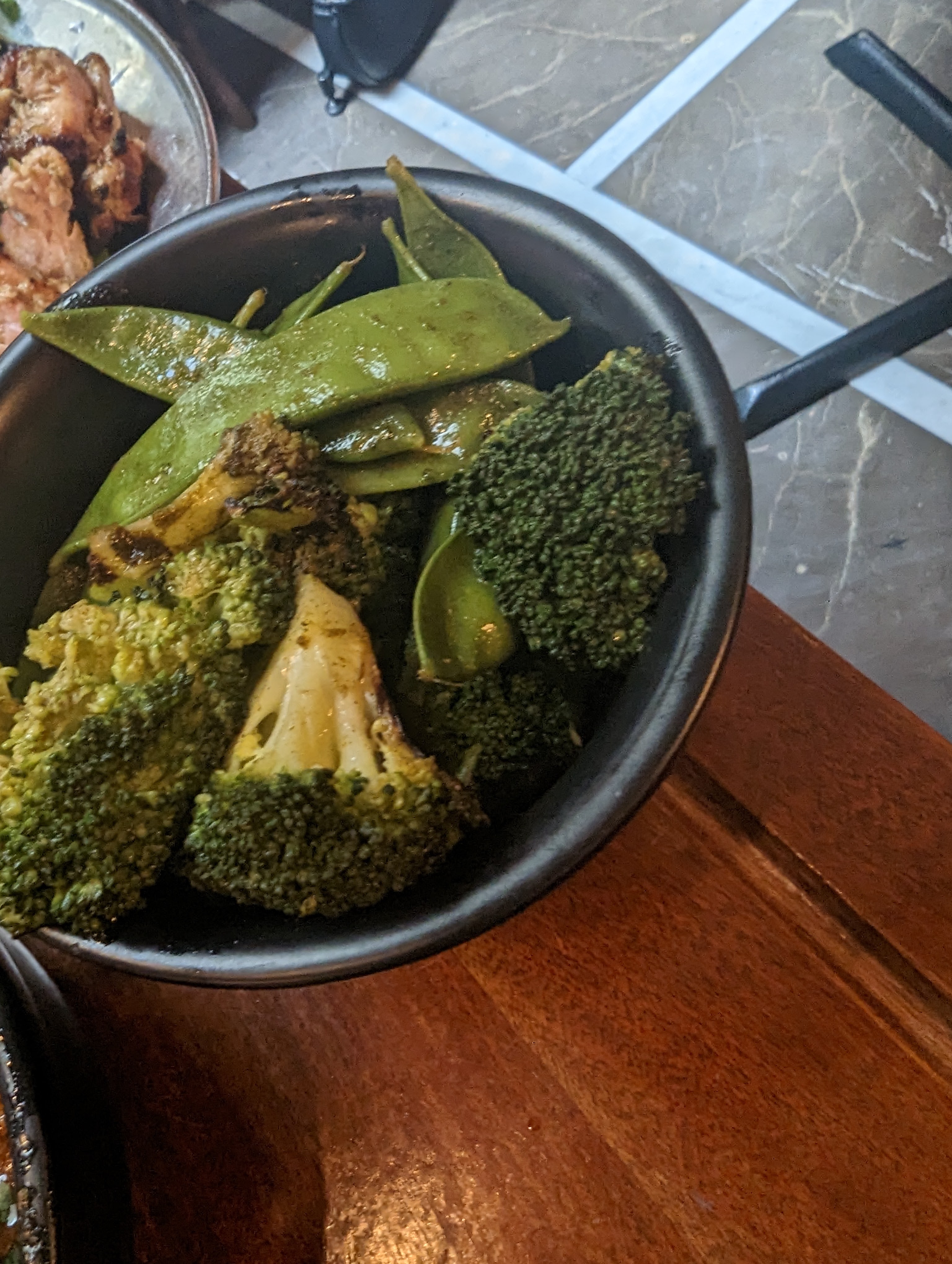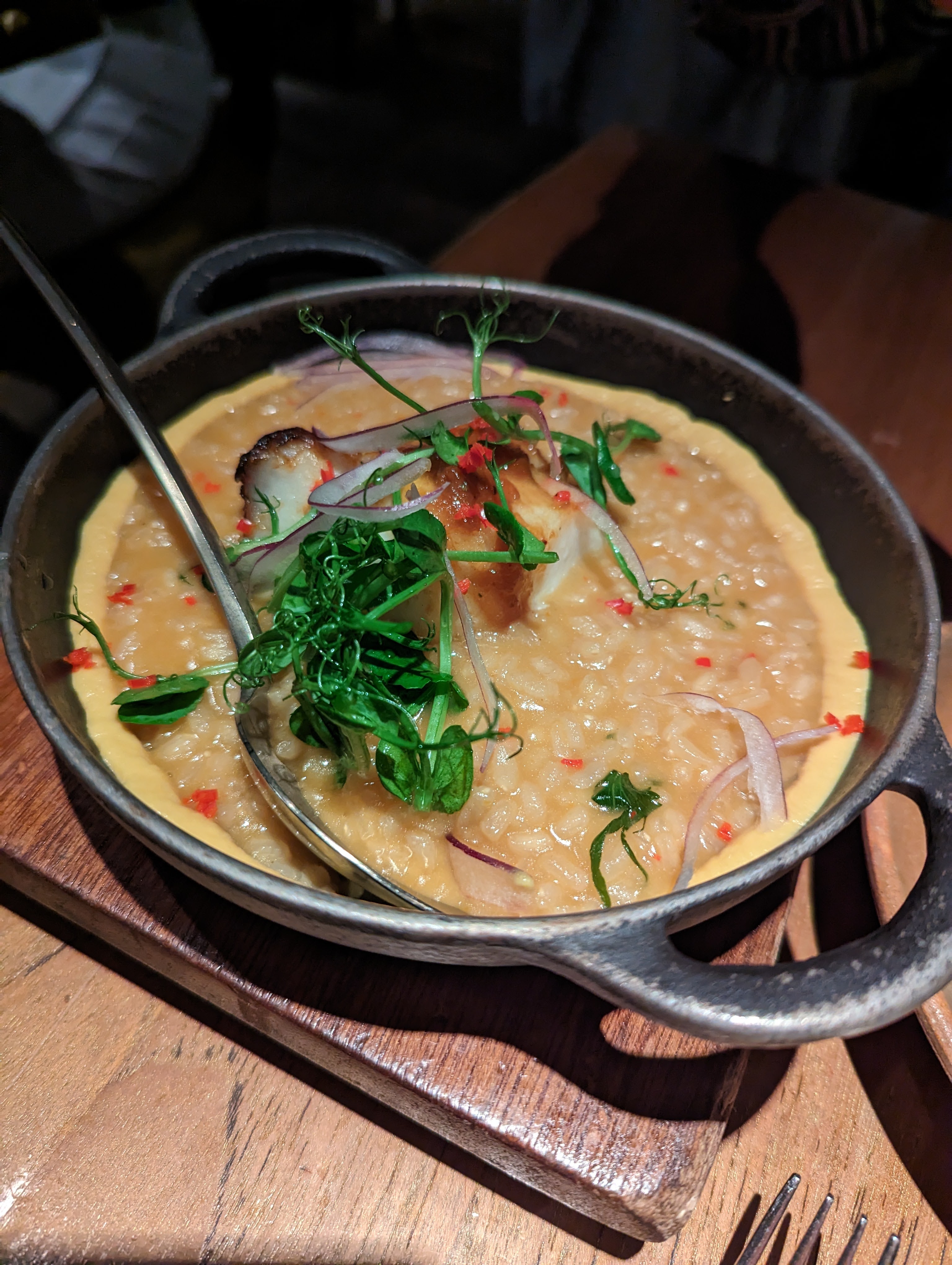 Mardi soir, nous avons fait un très bon repas au 45 Grill & Health à Vevey. Ils ont une carte très appétissante, et qui permet de choisir séparément la sauce et le ou les accompagnement(s), ce que je trouve très agréable. J’ai dégusté un poulpe rôti à la perfection (avec l’extrêmité des tentacules bien croustillante, miam !) avec une sauce chimichurri et des épinards.