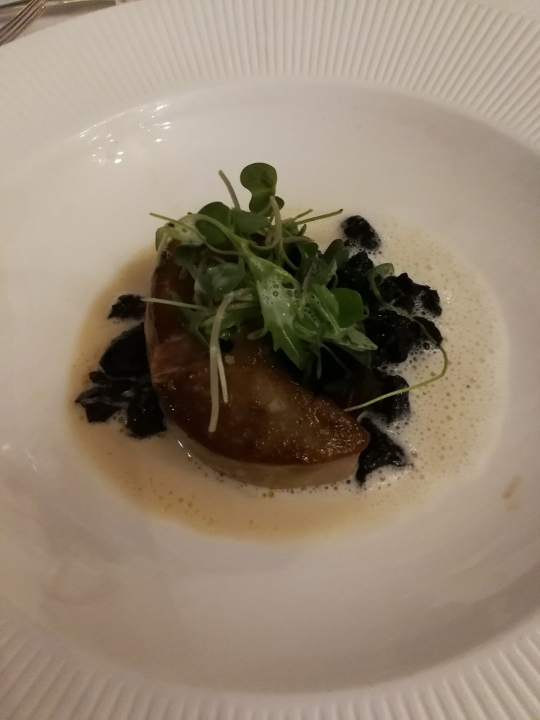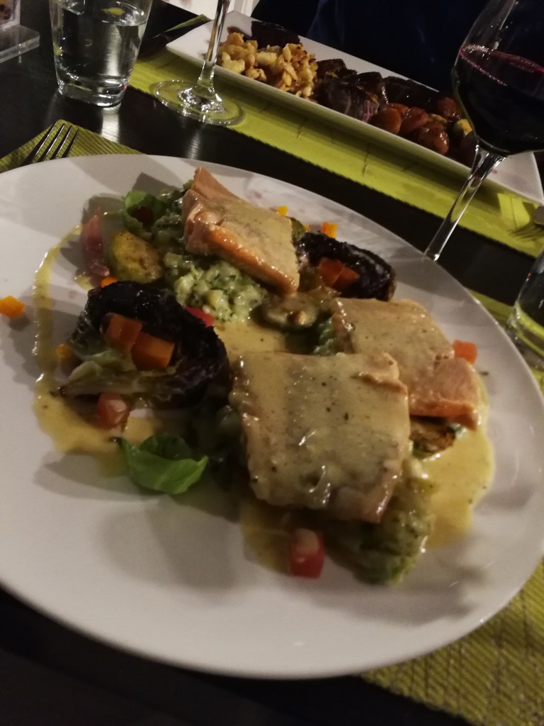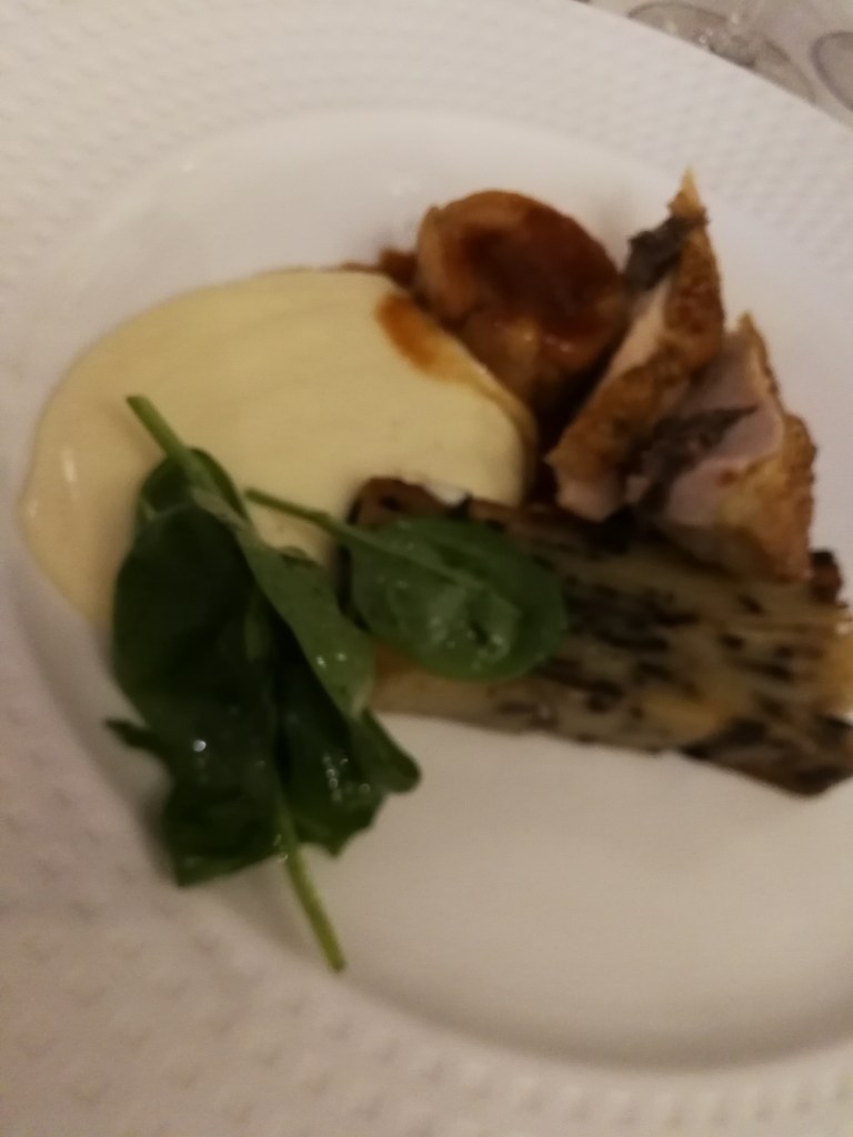 Mardi soir, première sortie : nous allions à Morges au théâtre avec des amis, et avons cherché un restaurant dans les parages qui accepte de nous servir à 22h. Du coup, nous avons découvert une petite perle : l’Auberge de l’Union, à Saint-Prex. Nous avons été accueillis avec le sourire et une grande gentillesse, on nous a installés, pris la commande d’apéritifs, puis, quand on nous les a servis, des plats, en nous précisant bien de prendre notre temps pour manger, pas besoin de se presser. De plus, c’est absolument délicieux ! Nous nous sommes partagé une portion de terrine de foie gras aux figues et Porto, que j’ai fait suivre d’une belle assiette d’omble chevalier sauce chasselas, servi avec une excellente écrasée de pommes de terre aux herbes et avec des petits légumes.