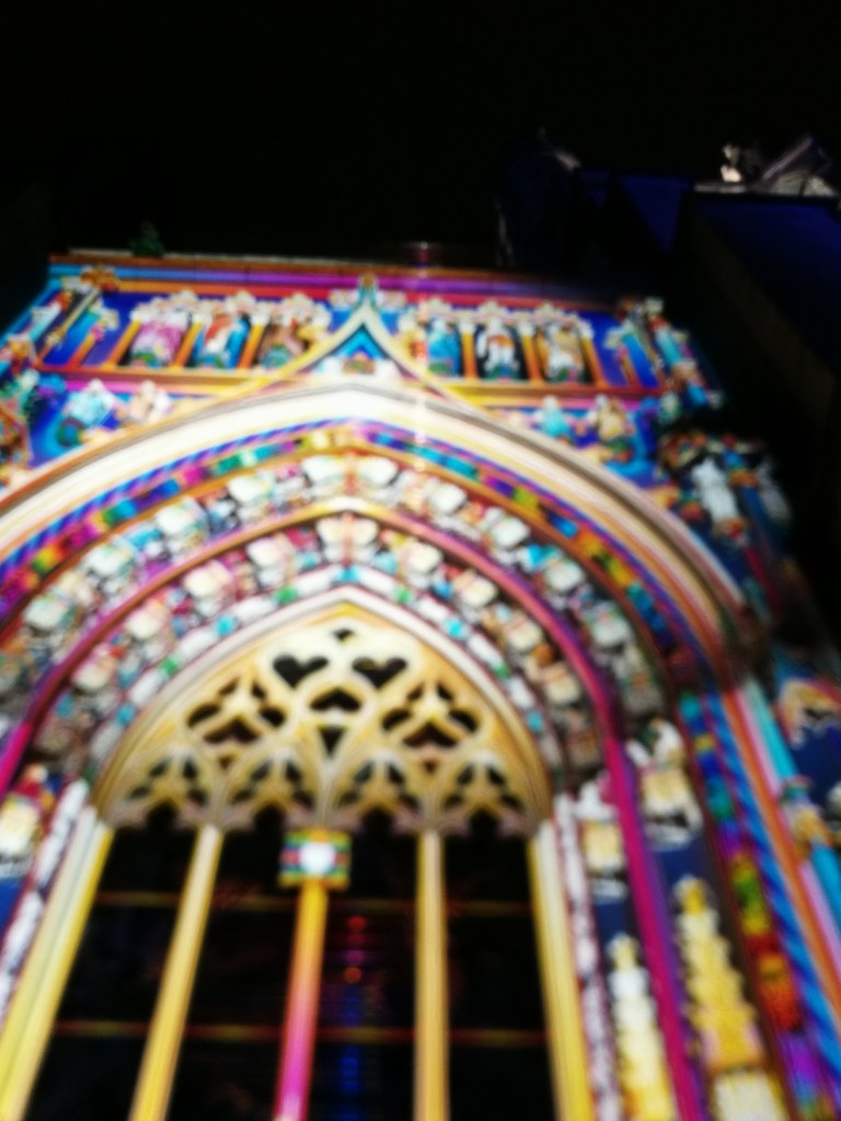 Nous avons ensuite eu droit à une visite commentée des installations de Lausanne Lumières, et je dois dire que mon gros coup de cœur va à l’illumination du portail nord de la Cathédrale, que je vous invite à ne pas rater, et qui d’une part met en valeur tous les détails des sculptures de ce portail, et d’autre part crée une image magique, qui m’a fait penser aux ravissantes crèches peintes d’Amérique du Sud, en version immense. A savoir : ce type de visite guidée est proposé gratuitement tous les jeudis soirs de novembre et décembre, à 19h (départ sur la place Centrale), et c’est vraiment à faire (durée : une heure environ).