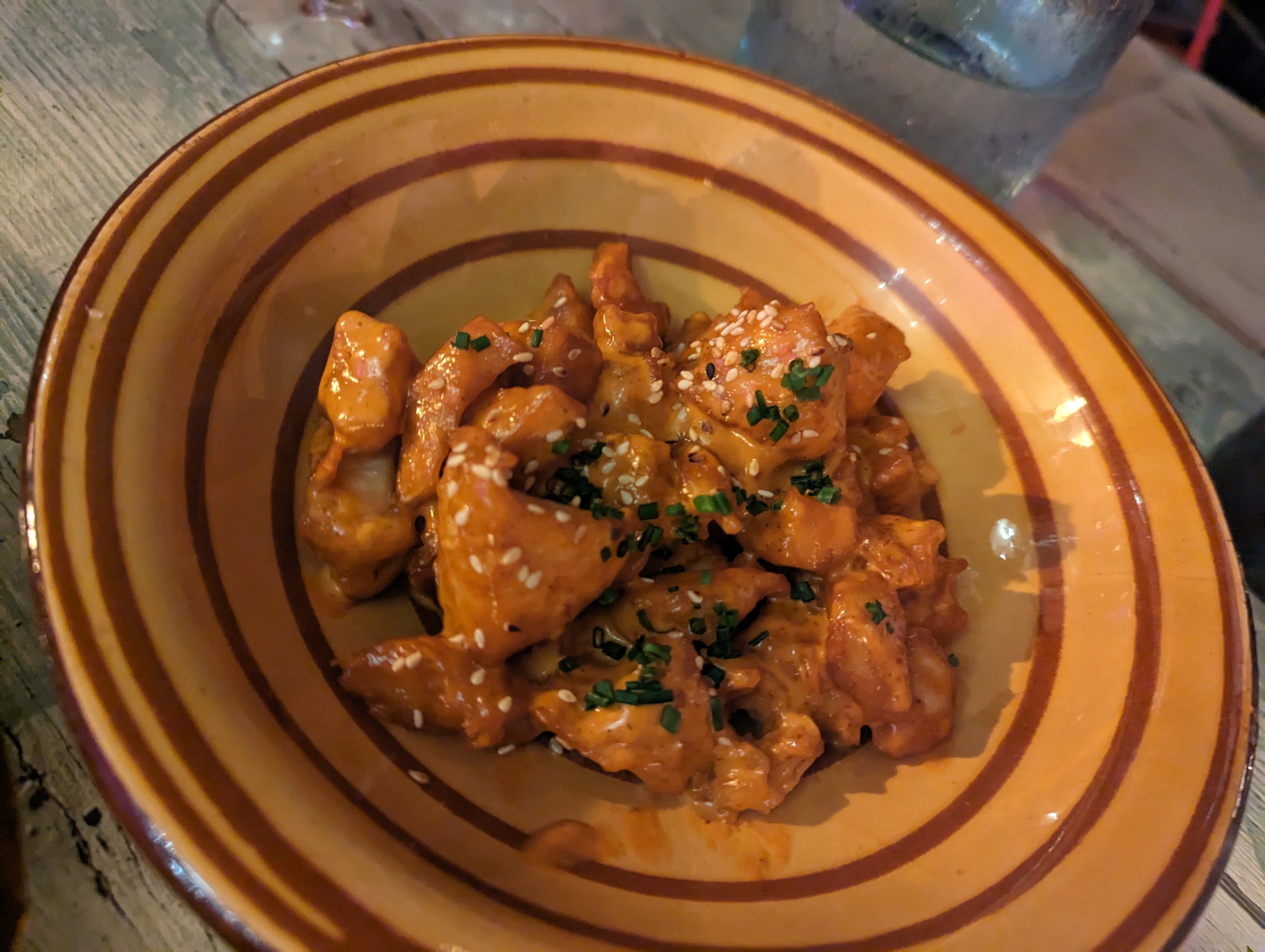 Jeudi soir, nous avons mangé chez Sardine. Belle découverte ! Un service adorable et très efficace, des plats délicieux, le décor est sympa, et cerise sur le gâteau, ils font un « forfait eau » : eau purifiée (gazéifiée ou non) à volonté, 2fr50 par personne, j’applaudis des deux mains. Ils sont juste un tout petit peu trop centrés sur les vins nature pour moi (j’aime bien de temps en temps, mais ils ne sont pas tous bons, certains sont plus du cidre qu’autre chose hélas).