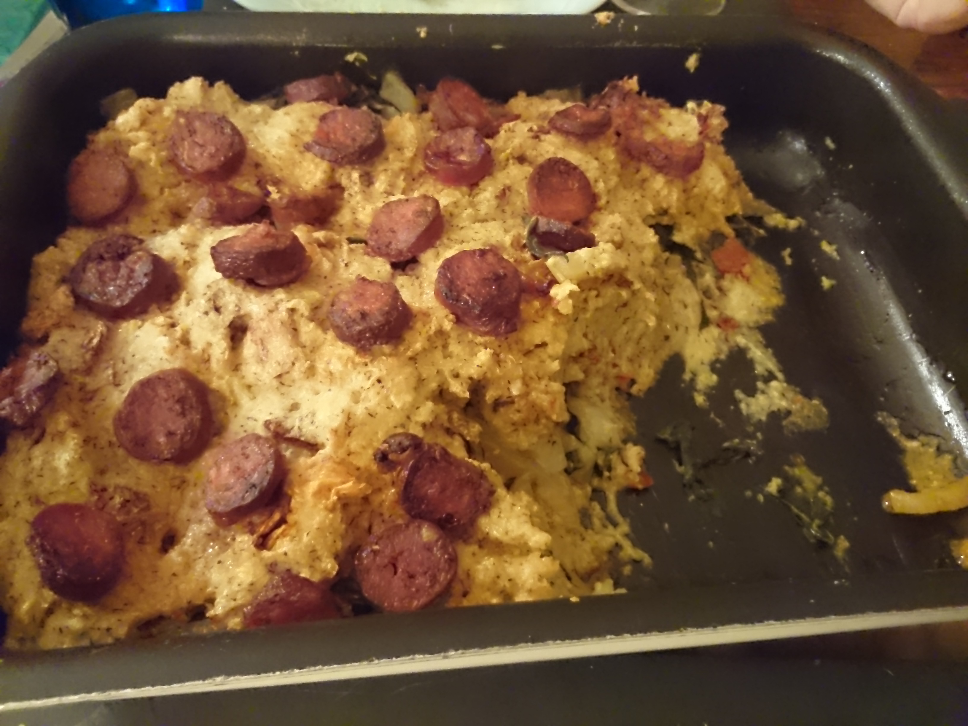 Mercredi soir, j’ai fait de la morue aux pommes de terre, petits poivrons doux et oignons (le tout au four), escortée d’épinards au beurre.