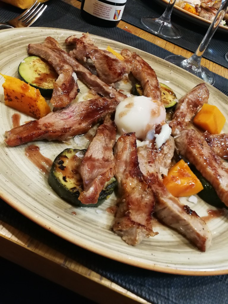 Dimanche midi, nous avons mangé à l’aéroport, zone transit, dans une rôtisserie espagnole très honorable, Pepito Grillo. J’ai pris le secreto de porc, qui avait une portion un peu congrue de légumes en accompagnement (mais les légumes en Espagne, c’est toujours un peu difficile) mais était délicieux (et c’est rare de bien manger dans un aéroport, surtout en zone transit).
