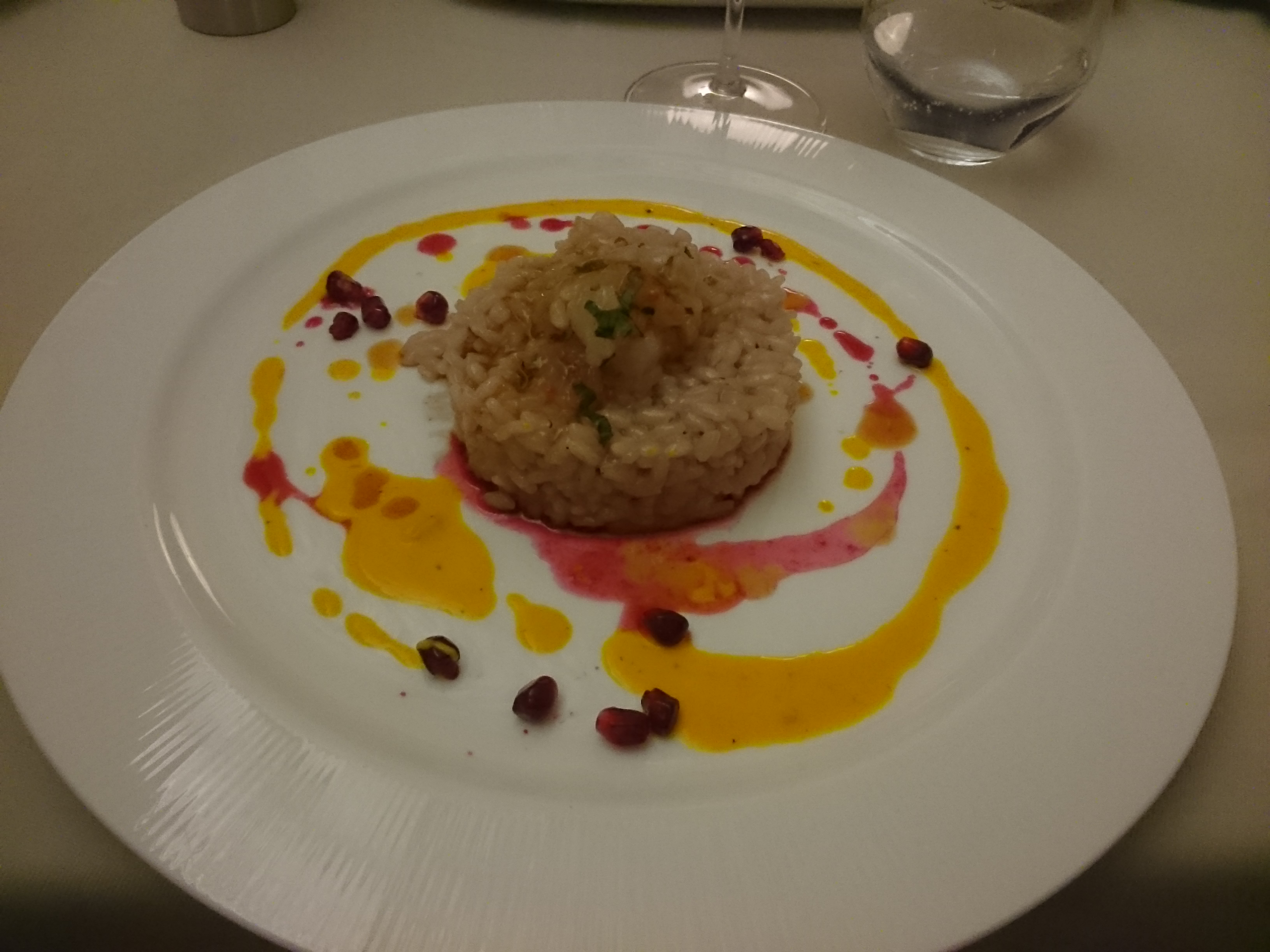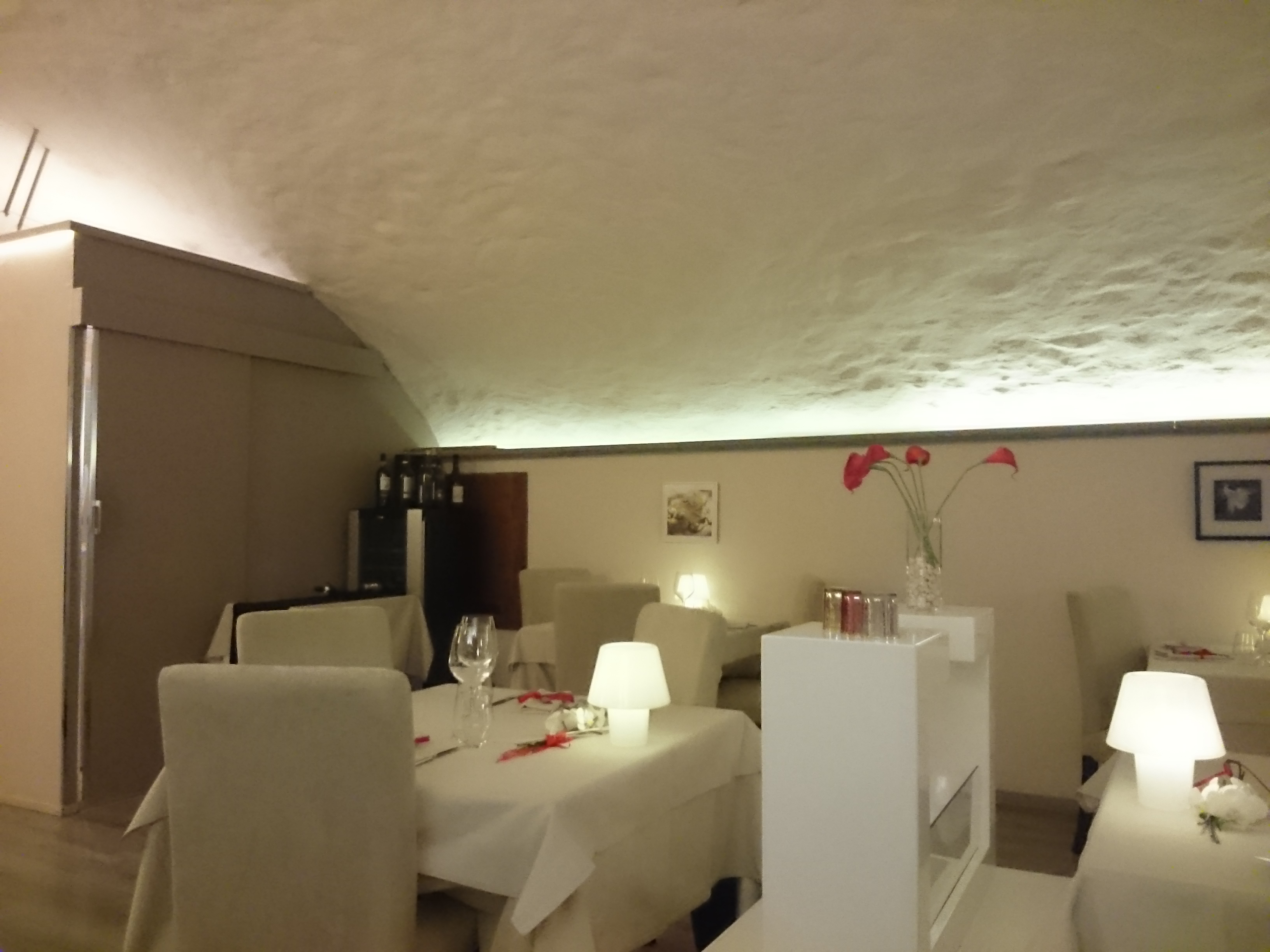 2016-11-18-20-34-392016-11-18-20-34-46En salle, la patronne supervise le service et officie comme sommelière, et nous a fait découvrir de superbes vins. En cuisine, le chef est un passionné, qui vient en salle s’enquérir des goûts et dégoûts de ses clients, des quantités qu’ils ont envie de manger, et va ensuite exécuter des merveilles. Nous avons pris le menu « mano libera » (dégustation surprise), qui se décline en six plats, soit tous salés, soit cinq plats salés et un dessert. Nous avons opté pour la première alternative, avec les vins assortis. Voici ce que nous avons mangé :