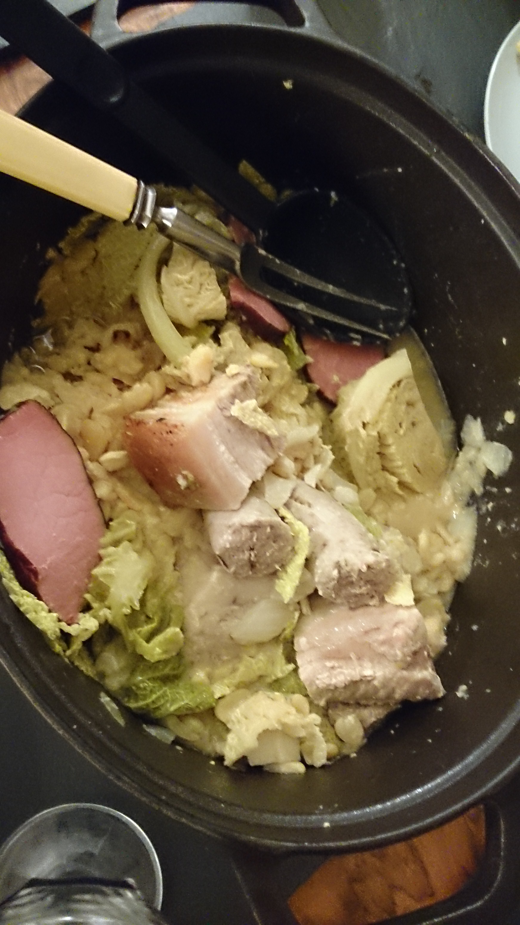 Mercredi soir, dans la série des potées, j’ai servi des lentilles aux côtes de bettes et du saucisson vaudois, avec le même vin que la veille.