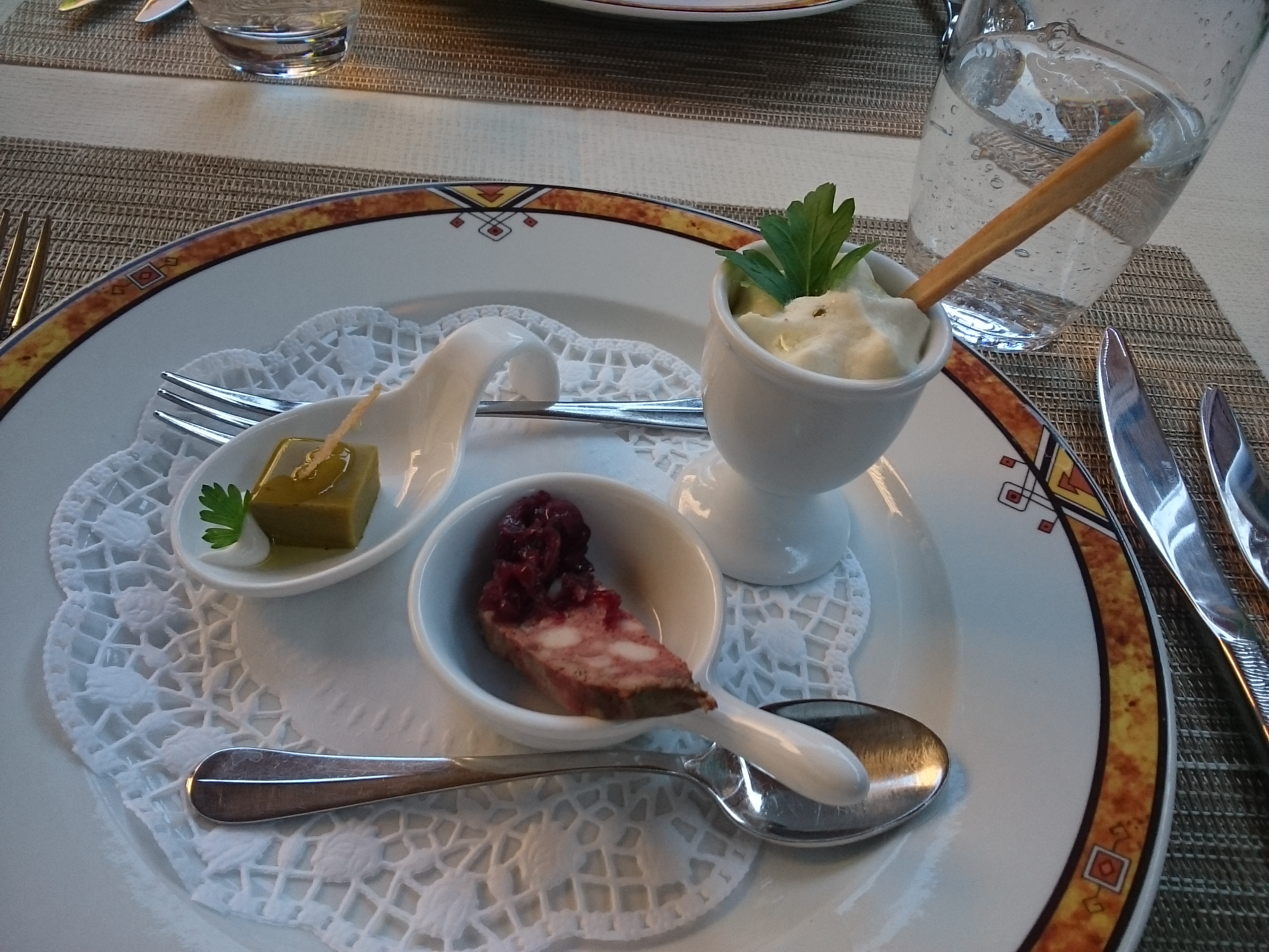 - Accompagnements: pommes de terre rôties (au sel de paprika), carpaccio de betteraves (avec fromage, orange sanguine et oignons rouges), tomates (avec anchois, câpres, oignons rouges et basilic)