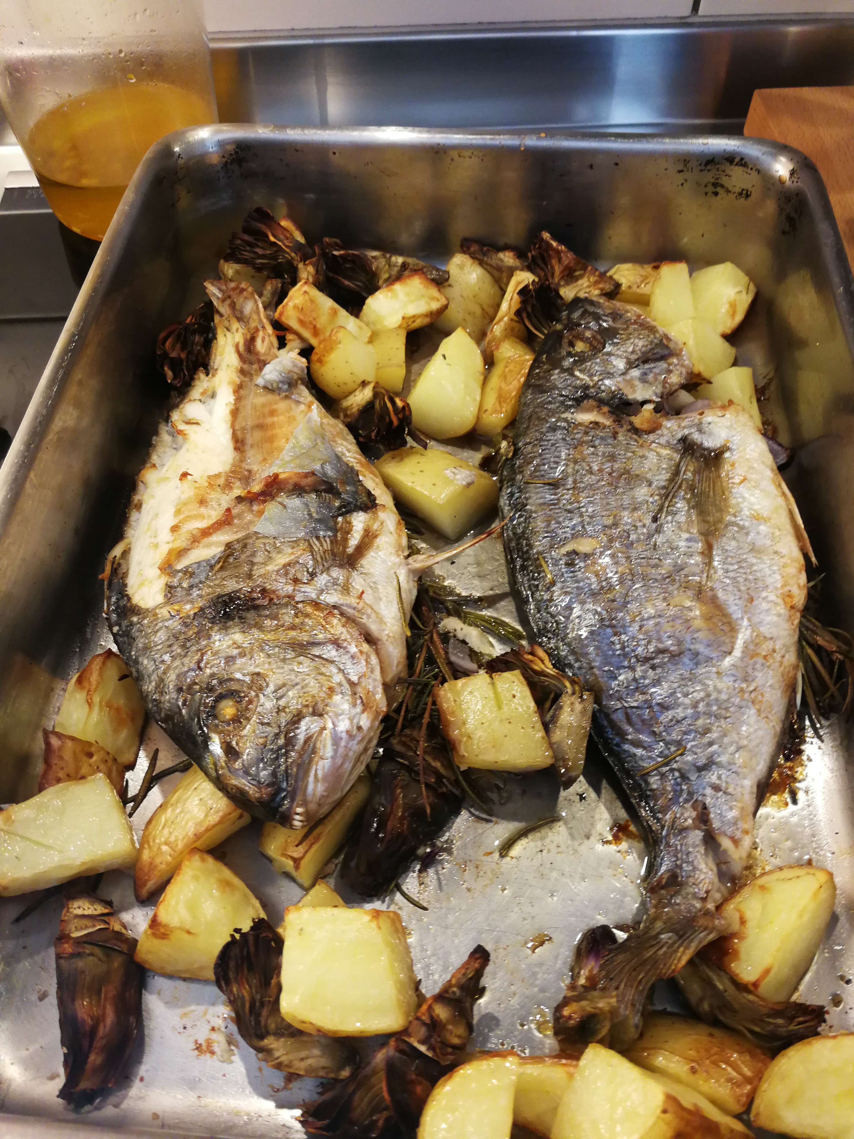 Dimanche midi, j’ai utilisé une recette d’espadon à la salsa d’avocat, mais en remplaçant l’espadon par des filets de sardine que j’ai grillés au four. Très léger et savoureux. J’ai juste fait une petite salade verte en accompagnement.