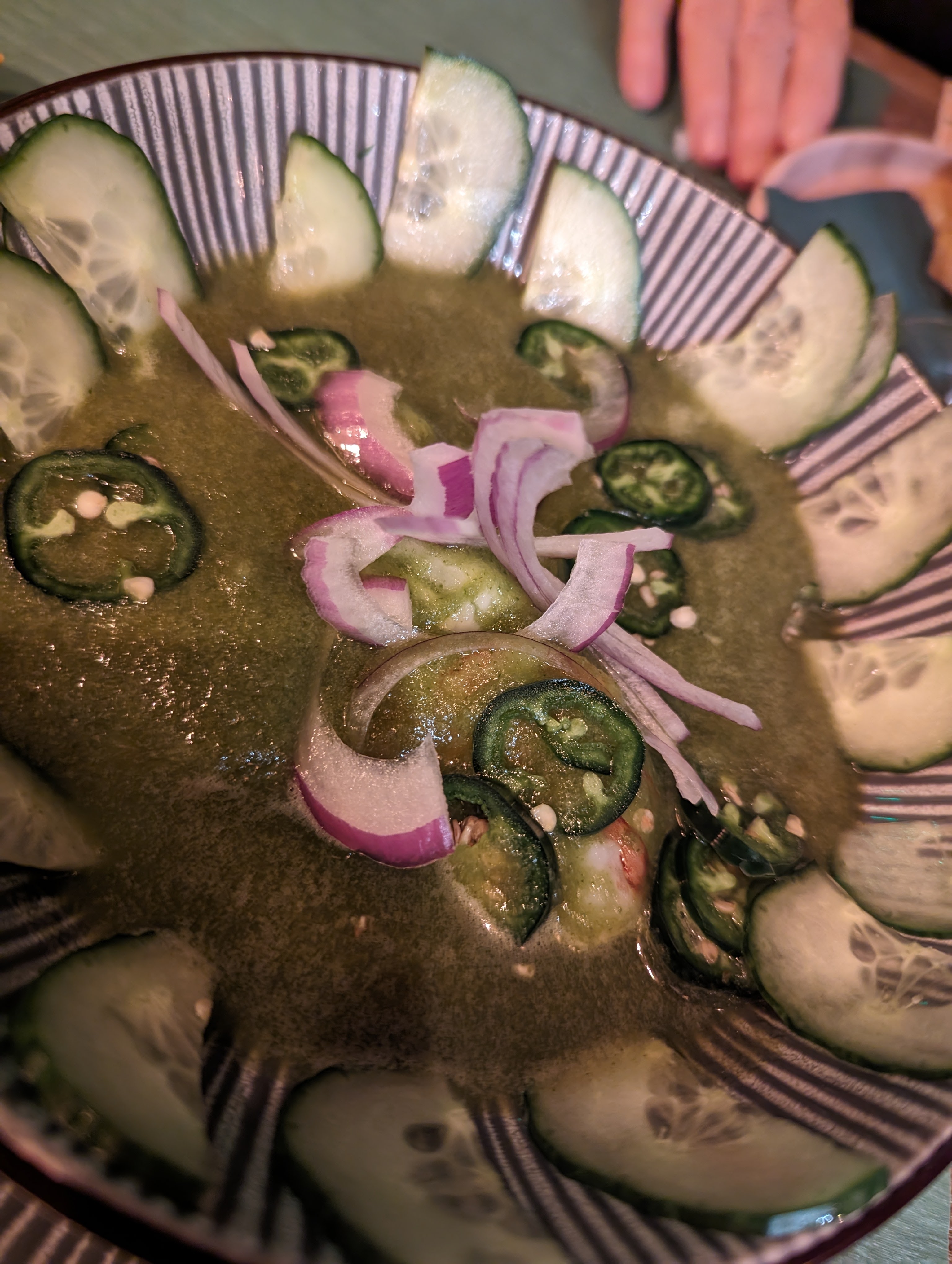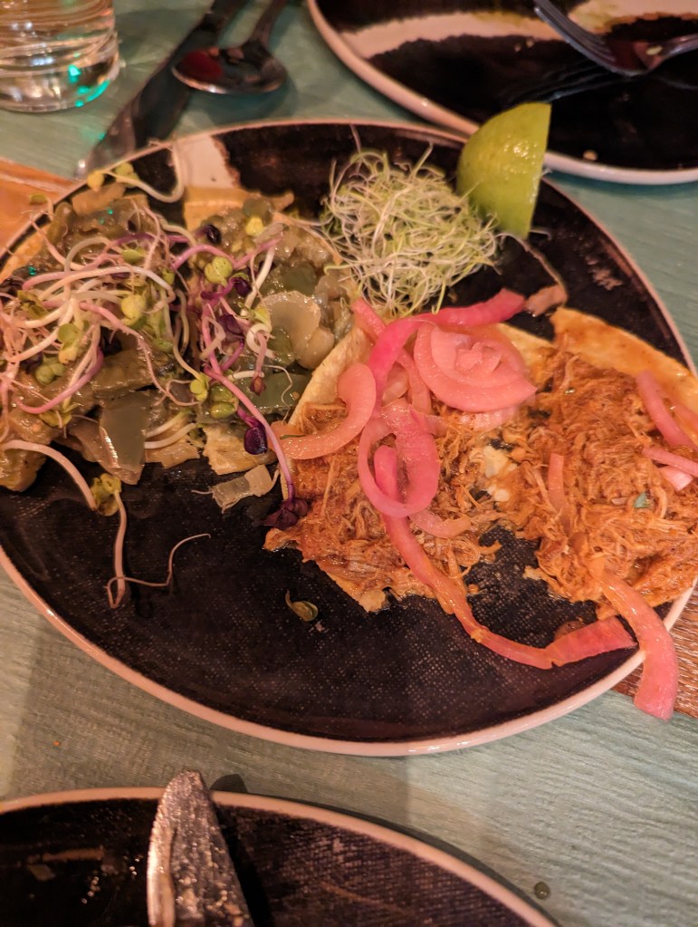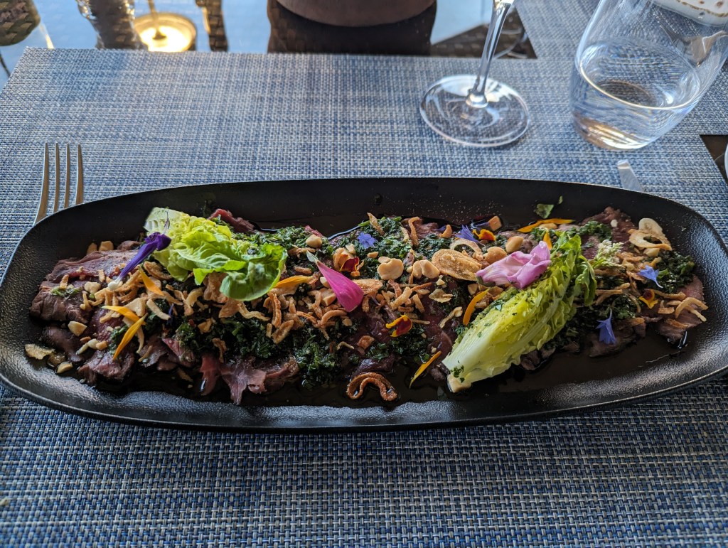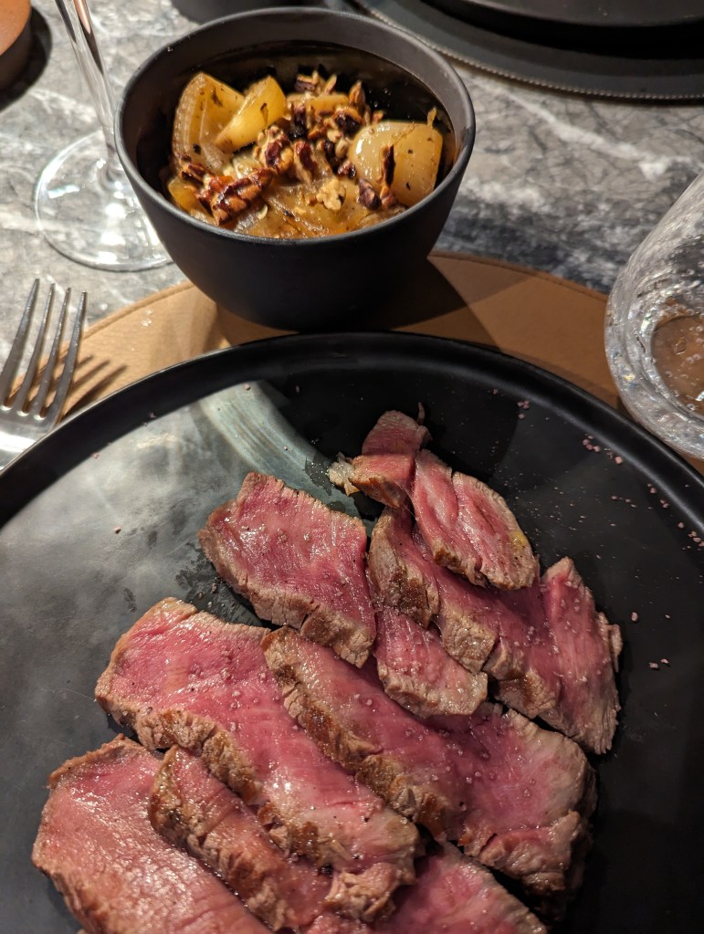 Mardi soir, nous avons fait un très bon repas au 45 Grill & Health à Vevey. Ils ont une carte très appétissante, et qui permet de choisir séparément la sauce et le ou les accompagnement(s), ce que je trouve très agréable. J’ai dégusté un poulpe rôti à la perfection (avec l’extrêmité des tentacules bien croustillante, miam !) avec une sauce chimichurri et des épinards.