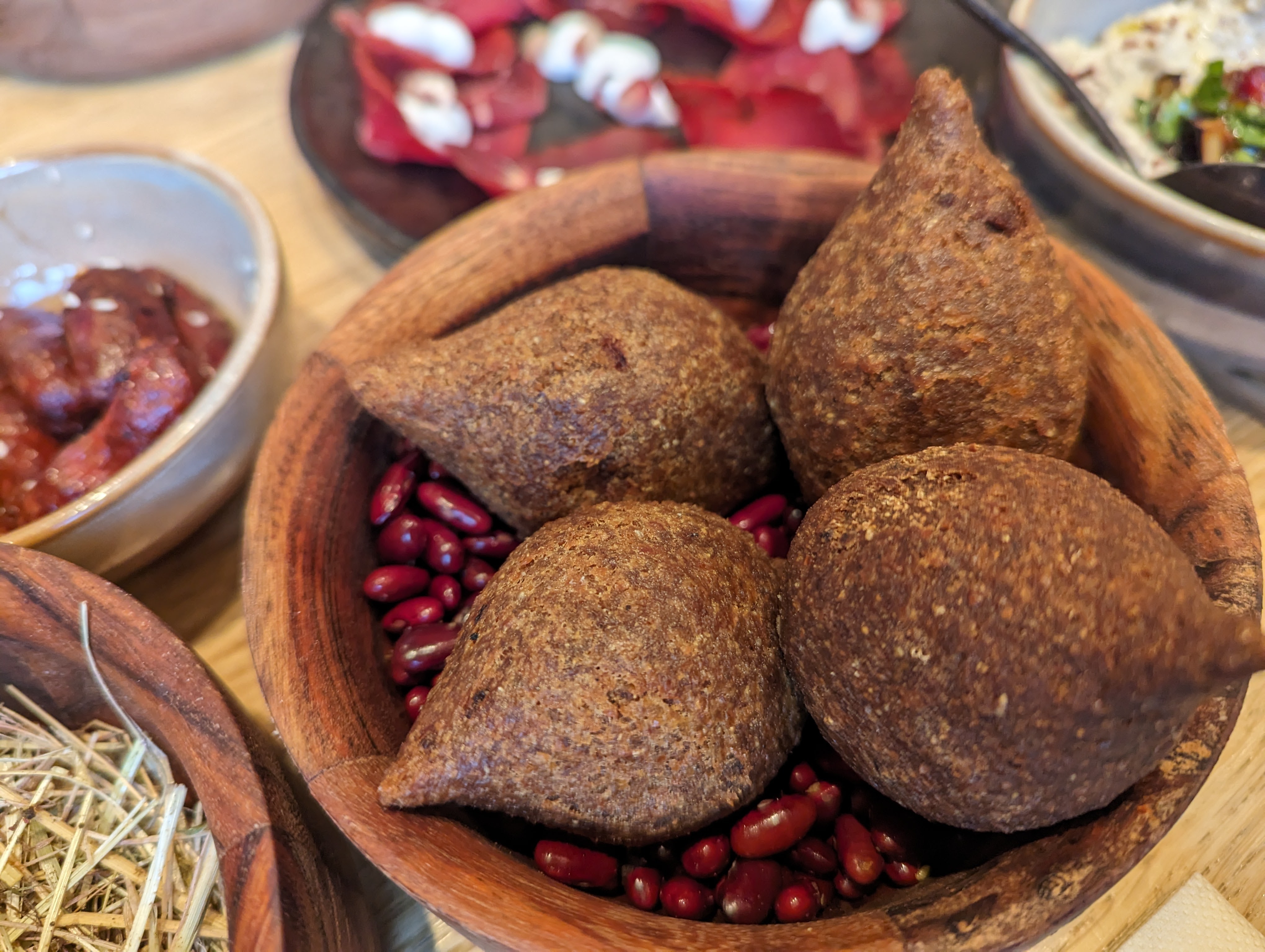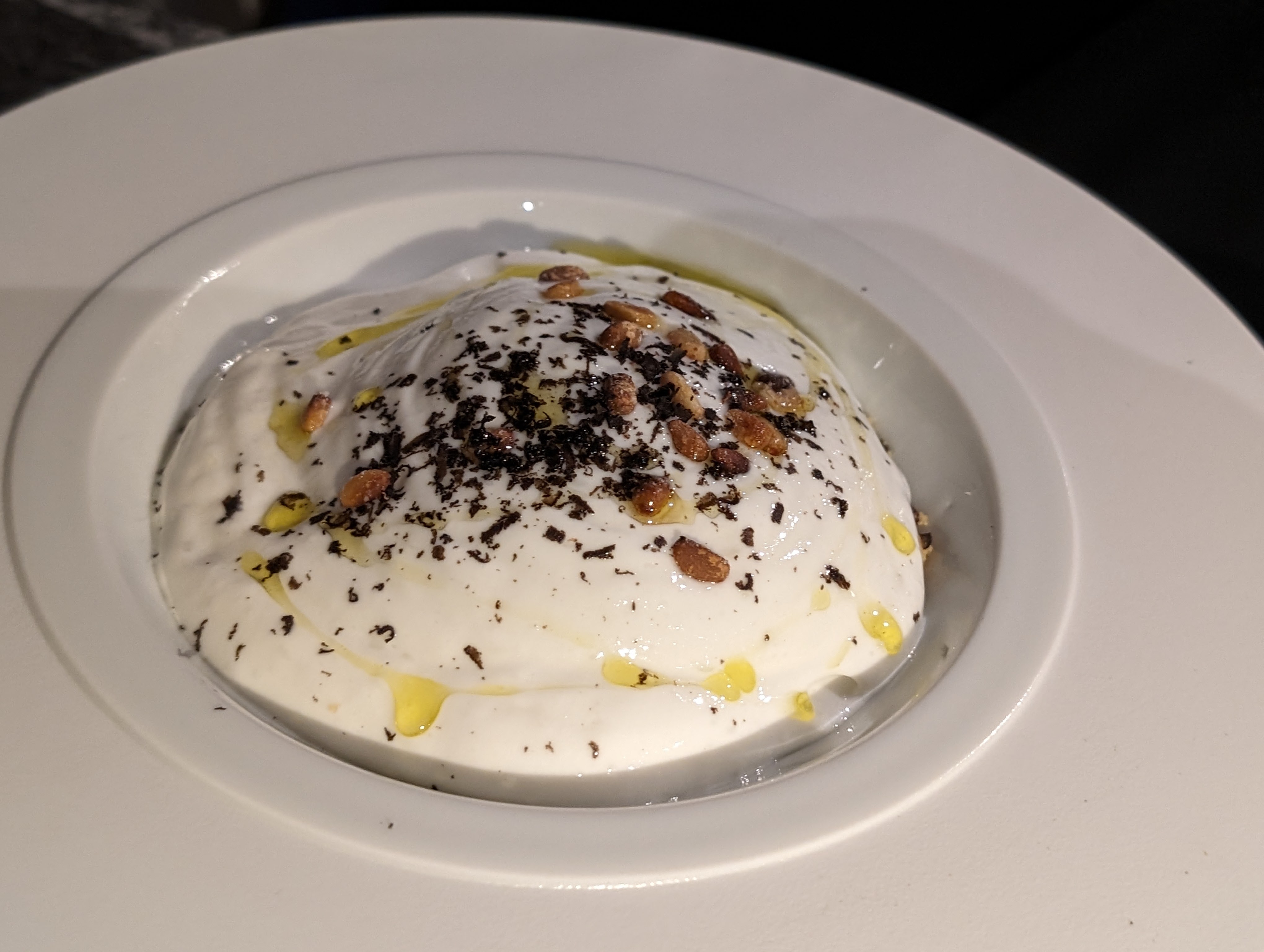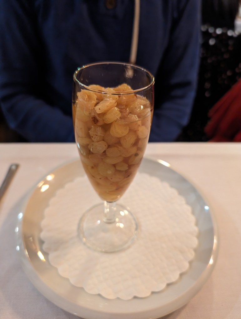 Samedi soir, nous avions un bon Qoqa pour la Brasserie Notre-Dame à Payerne. Nous avons fait un excellent repas. Nous avons d’abord pris l’apéritif avec le cocktail du chef (qui est un barman littéralement de compétition, il a gagné un concours avec ce cocktail). Ensuite nous avons eu un menu complet : en entrée un oeuf parfait aux herbes et à la truffe blanche fondant et parfumé, puis un médaillon de veau accompagné d’un mille-feuille de légumes et d’un étonnant panier d’amandes farci à la mousseline de topinambours, croustillant à l’extérieur et mousseux à l’intérieur. Ensuite nous avons dégusté une belle et goûteuse assiette de fromages. Pour finir, un pré-dessert surprenant et délicieux composé d’une boule de chocolat blanc farci à la mousse de betteraves, et ensuite le dessert, une savoureuse assiette très légère dont le nom énonce la composition : « Irish Stout en glace et gel : crème d’orange / meringue au romarin fumé crème / tuile de betterave / gel myrtille / marshmallow betterave ».