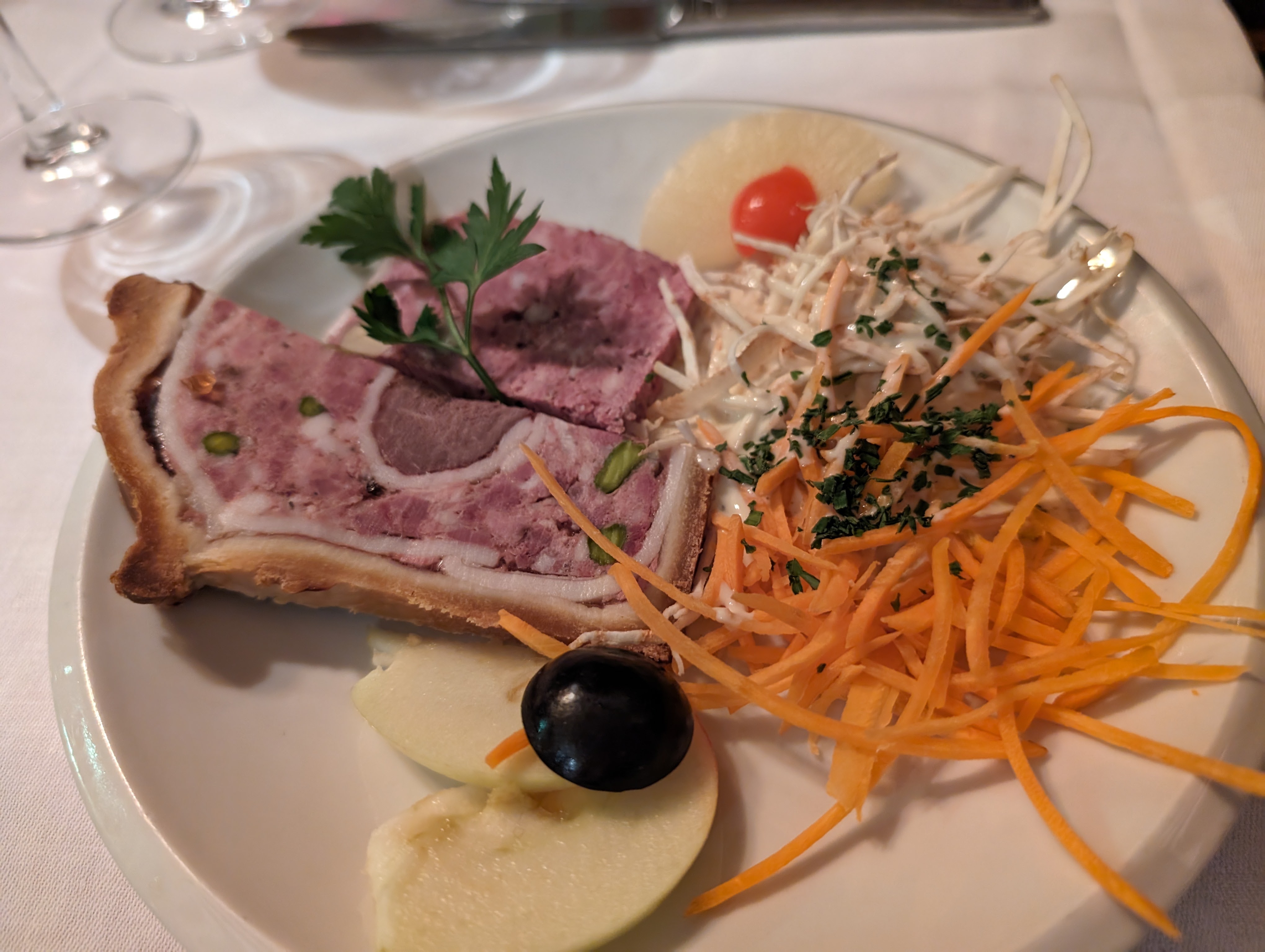 Vendredi soir, nous avons fait un excellent repas au restaurant d’application de l’Ecole Hôtelière de Thonon, le Restaurant 1912. Je dois dire que j’ai un faible pour les restaurants d’application, qui sont souvent d’un rapport prix-plaisir très favorable, et puis j’aime bien avoir à faire à des débutants, ils ont la plupart du temps envie de bien faire. Bien sûr, il faut être indulgent sur les erreurs de service, elles sont souvent le fait soit d’une ignorance compréhensible soit de l’envie de trop bien faire, justement.