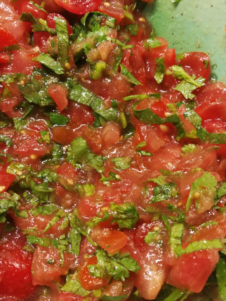 Mercredi soir, j’ai fait une salade de riz (qui contenait du poulet, des tomates, des courgettes crues, du thon, de l’oignon frais et du basilic) assaisonnée à l’italienne, c’est à dire avec une sauce faite de ricotta mixée avec du jus de citron et de l’huile d’olive.