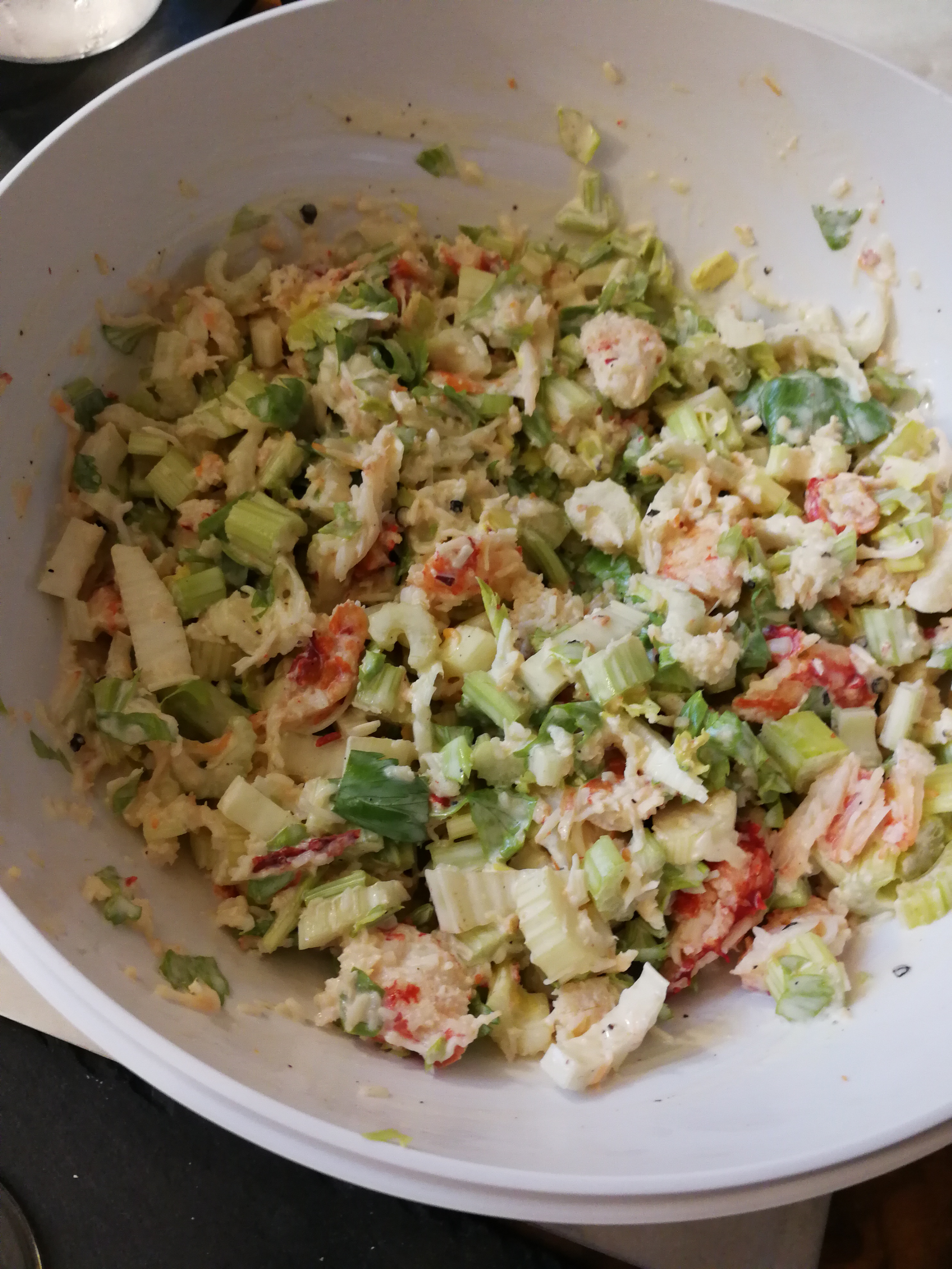 Jeudi soir, j’ai fait une egg salad à l’américaine (sans le pain), accompagnée de salade verte. C’est pas léger léger, mais de temps en temps, en utilisant une bonne mayonnaise maison, c’est délicieux.